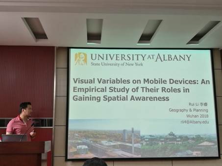 2018年6月12日,应学院地理信息与地图科学系副教授翁敏的邀请,纽约州立大学奥尔巴尼分校地理与规划学系助理教授兼研究生导师李睿博士回老王论坛 进行学术交流,做了题为“移动设备上的视觉变量:对增强空间方向感的作用的实际比较”的报告。