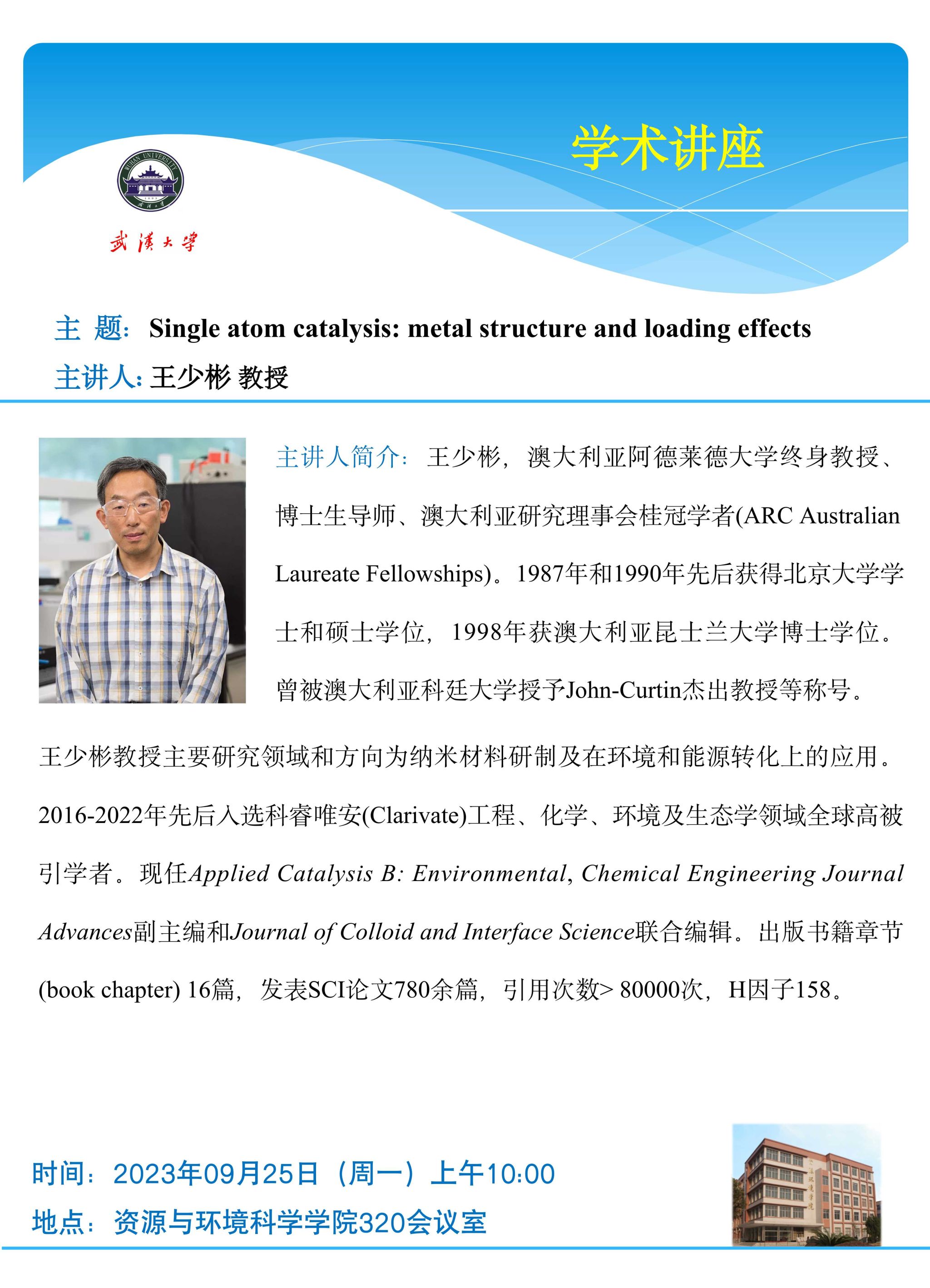 9月25日上午 Single atom catalysis: metal structure and loading effects