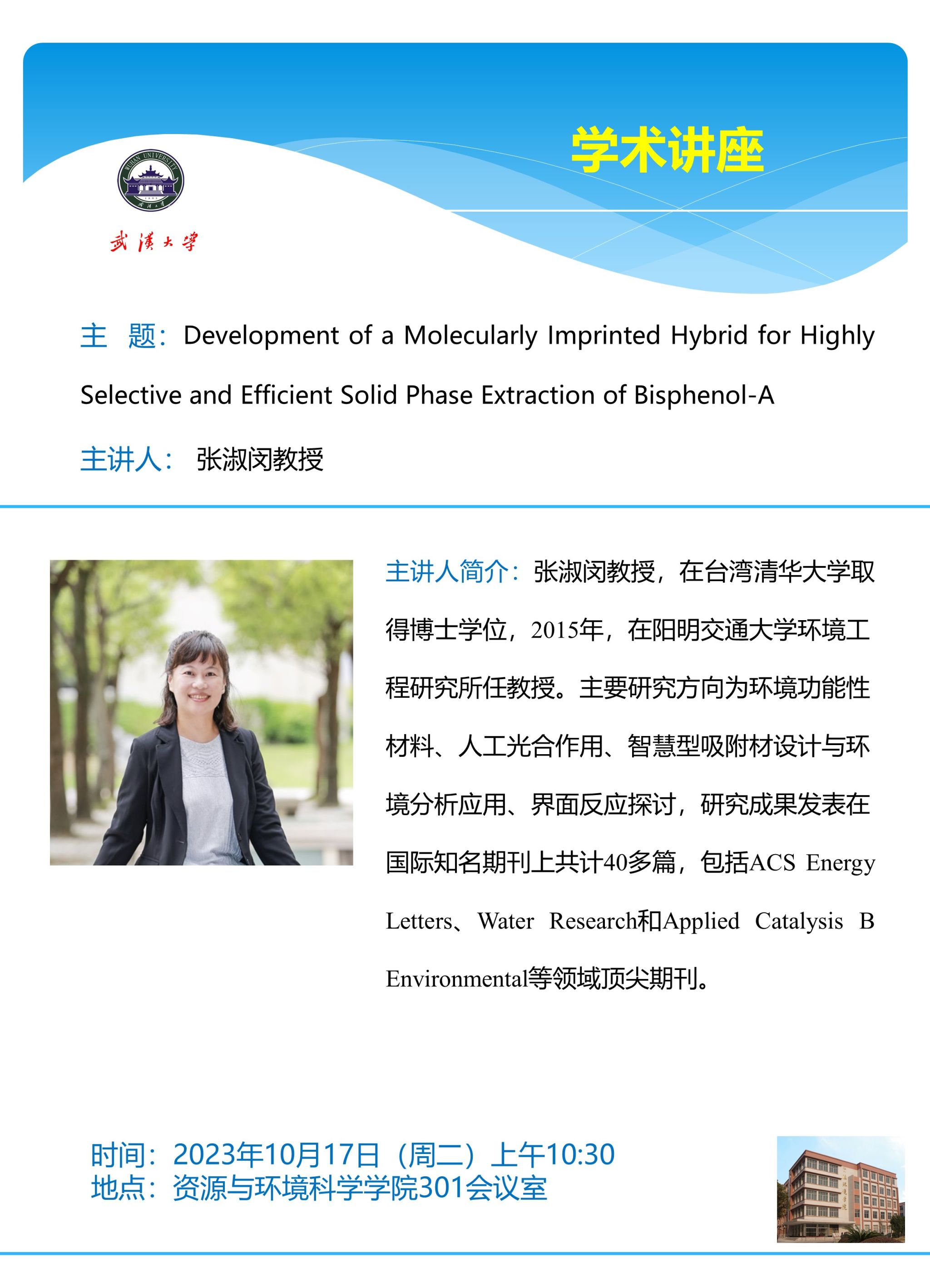 10月17日上午Development of a Molecularly Imprinted Hybrid for Highly Selective and Efficient Solid Phase Extraction of Bisphenol-A