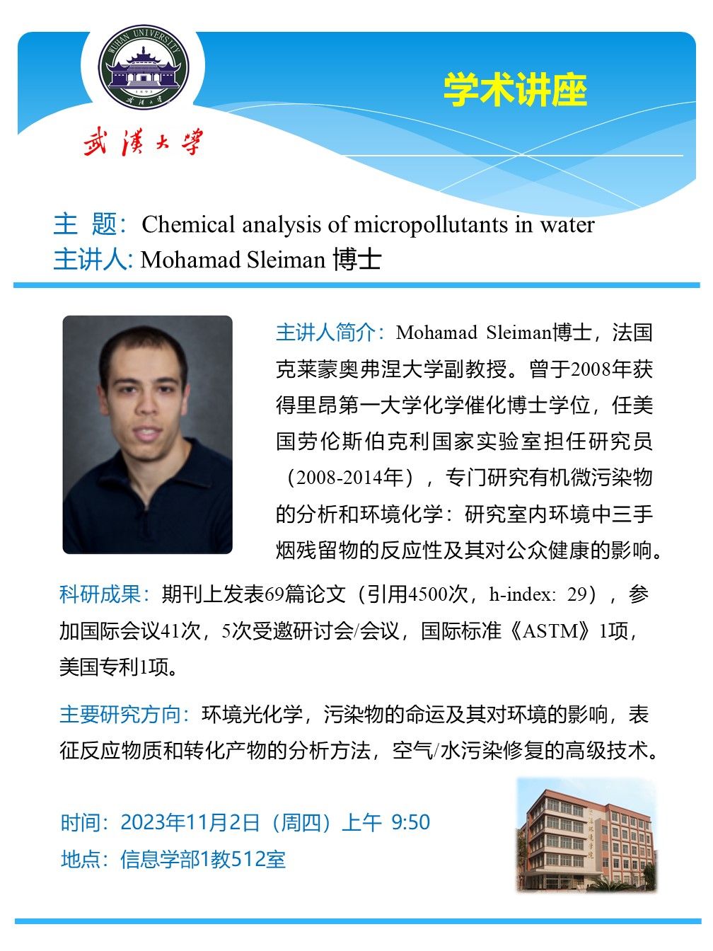 11月2日上午 Mohamad Sleiman 博士 Chemical analysis of micropollutants in water