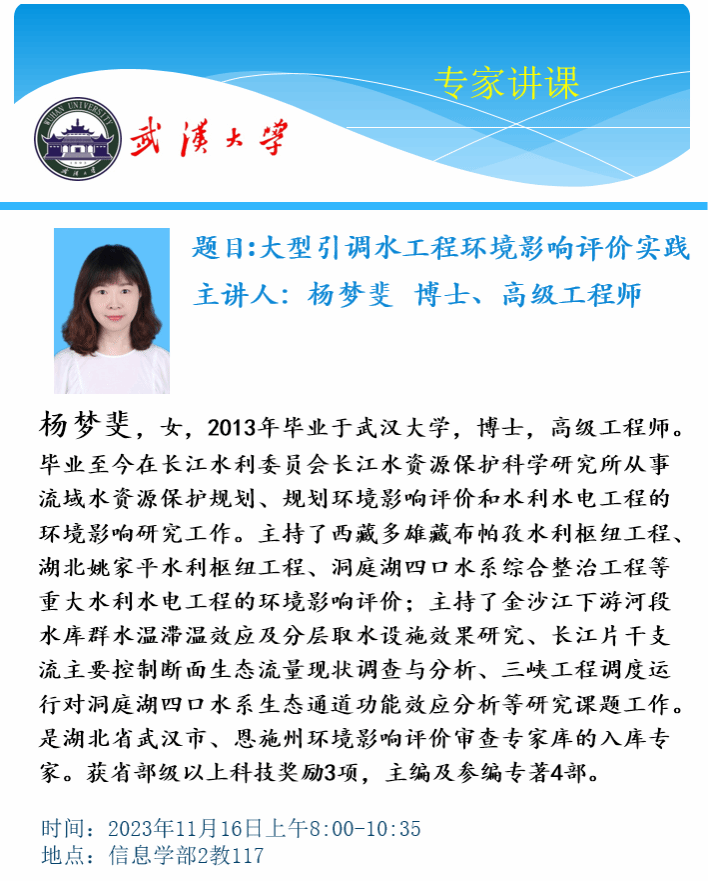 11月16日下午 杨梦斐博士:大型引调水工程环境影响评价实践