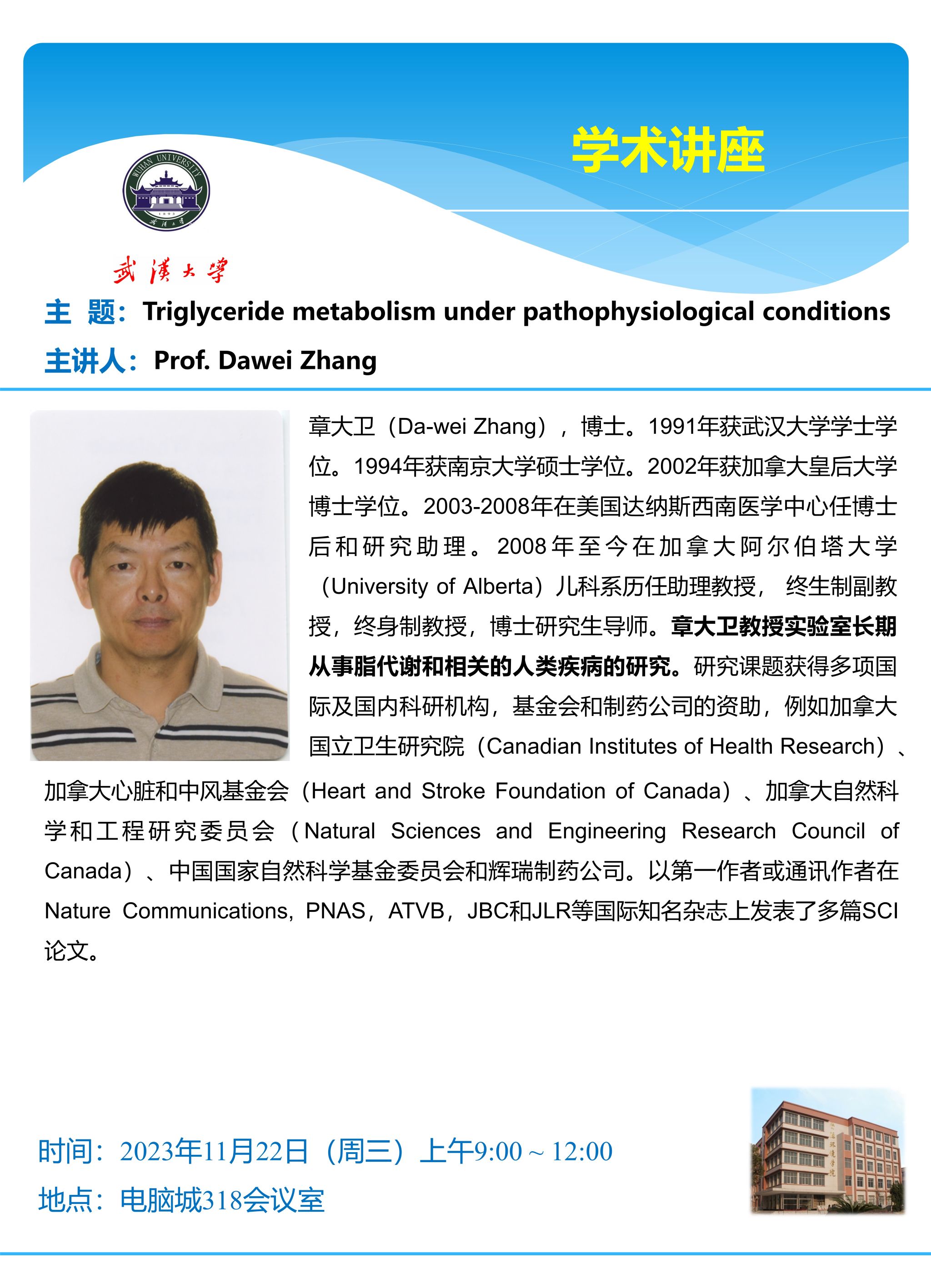 11月22日上午 章大卫教授 Triglyceride metabolism under pathophysiological conditions