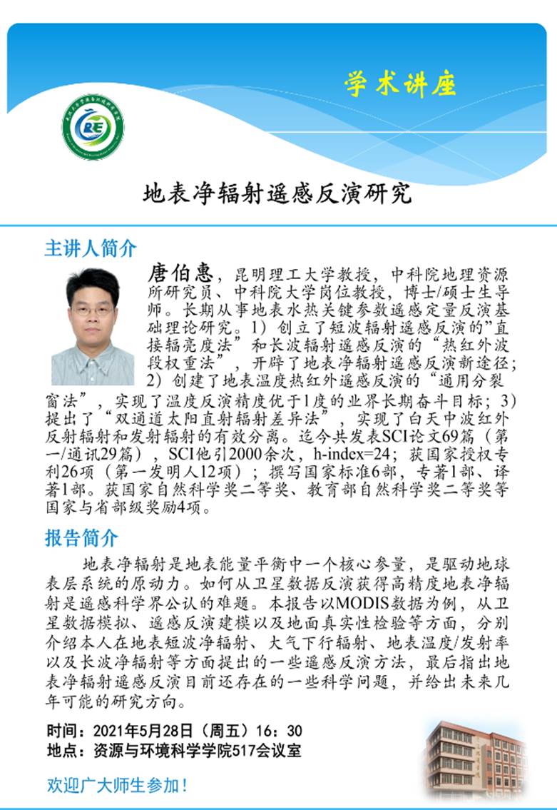 5月28日下午 唐伯惠教授:地表净辐射遥感反演研究
