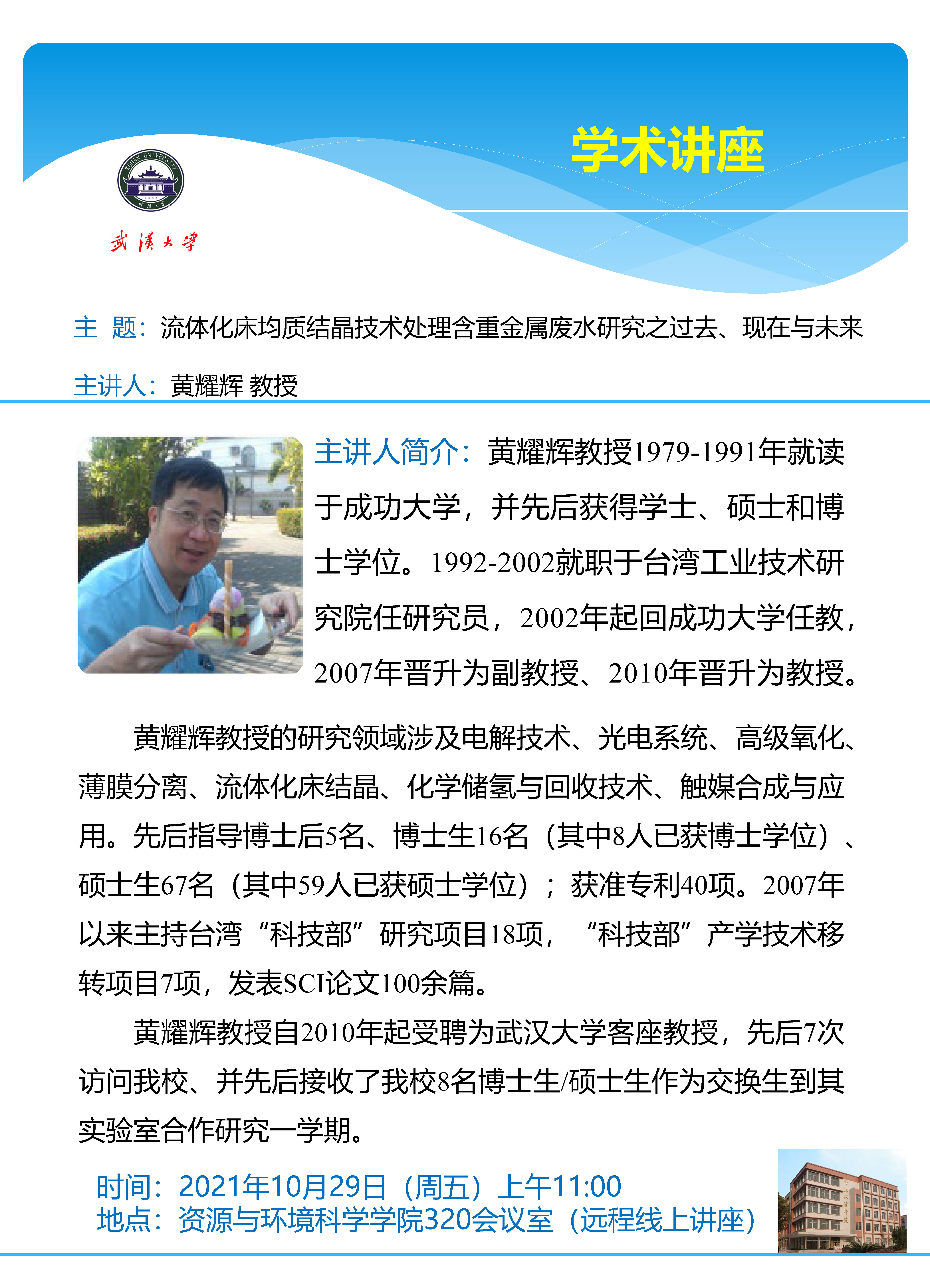 10月29日上午成功大学黄耀辉:流体化床均质结晶技术处理含重金属废水研究之过去、现在与未来