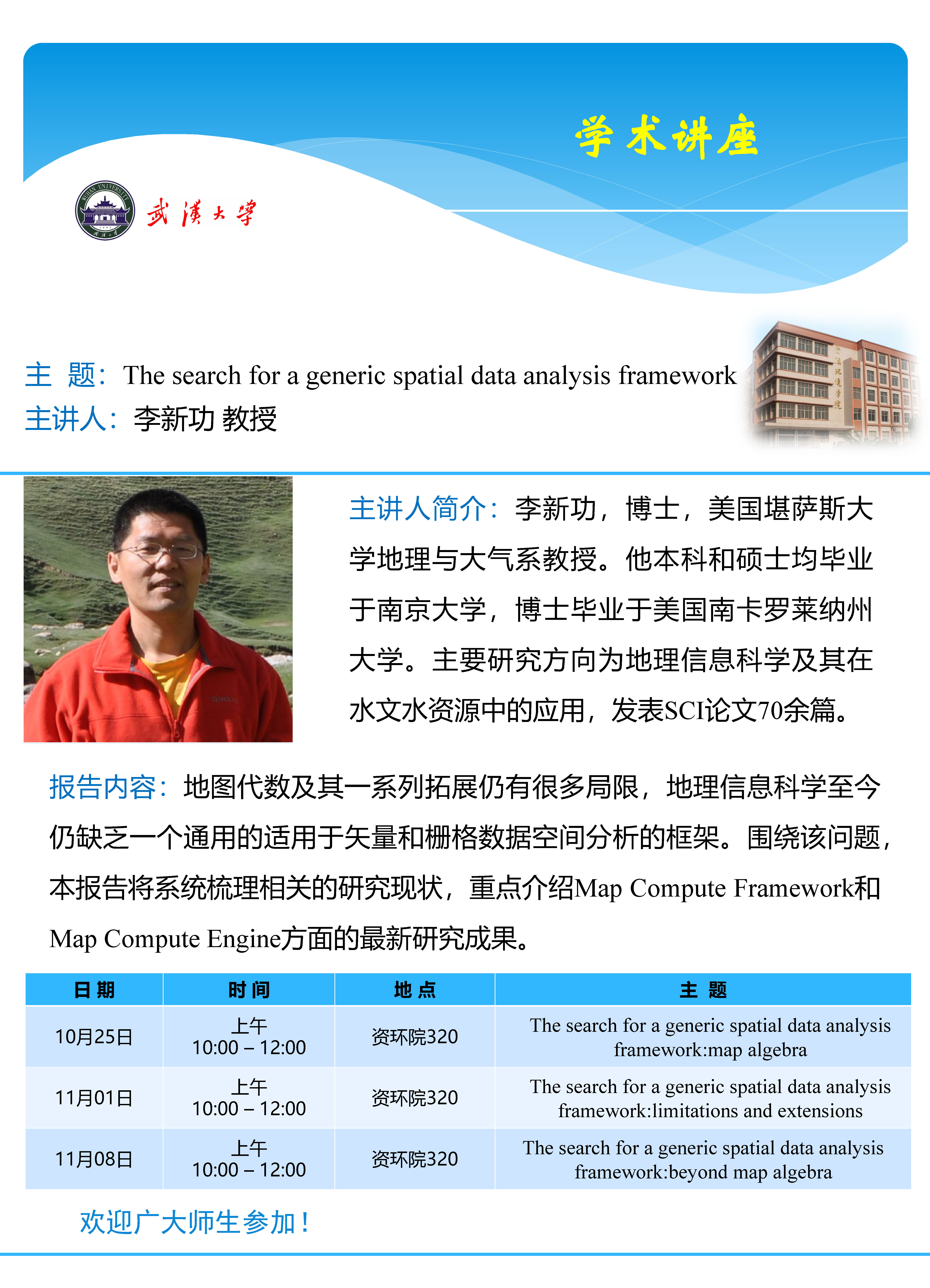 李新功教授系列讲座:The search for generic spatial data analysis framework