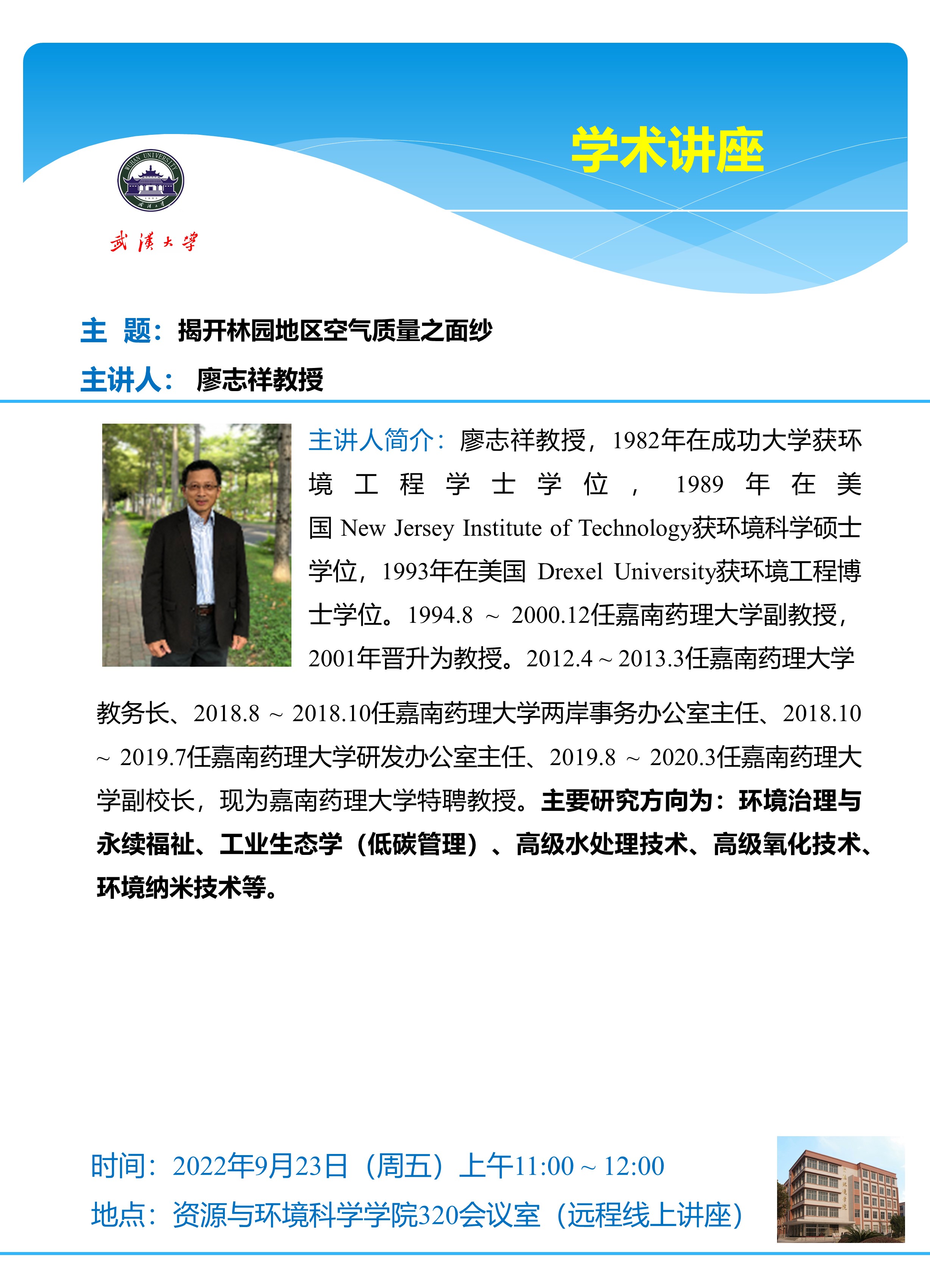 9月23日 珞珈资源环境讲坛第64讲 揭开林园地区空气质量之面纱