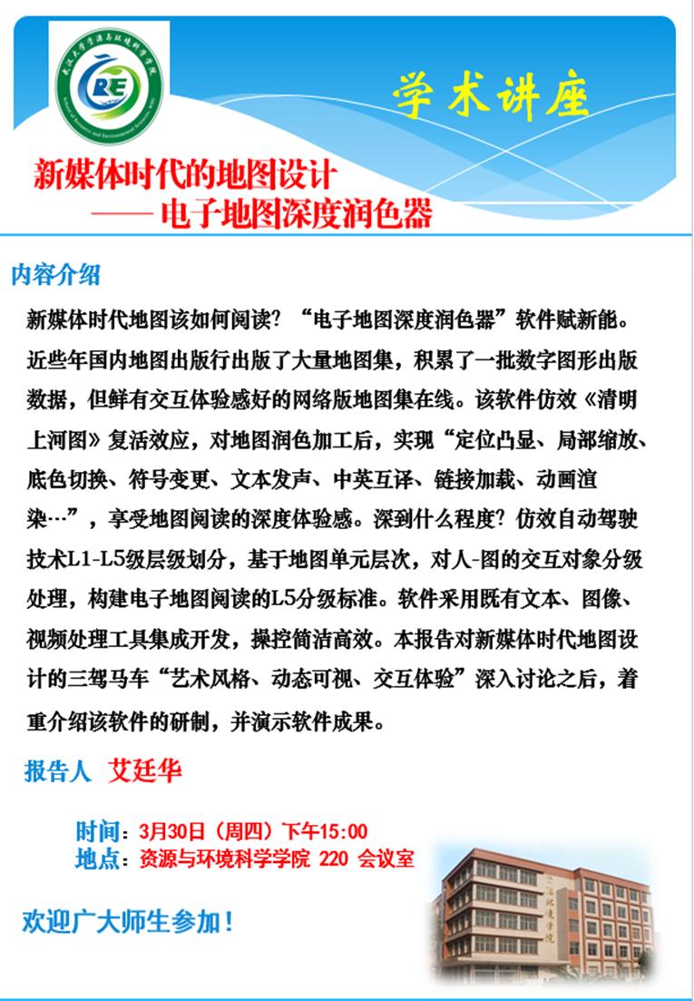 3月30日下午,艾廷华教授:新媒体时代的地图设计——电子地图深度润色器
