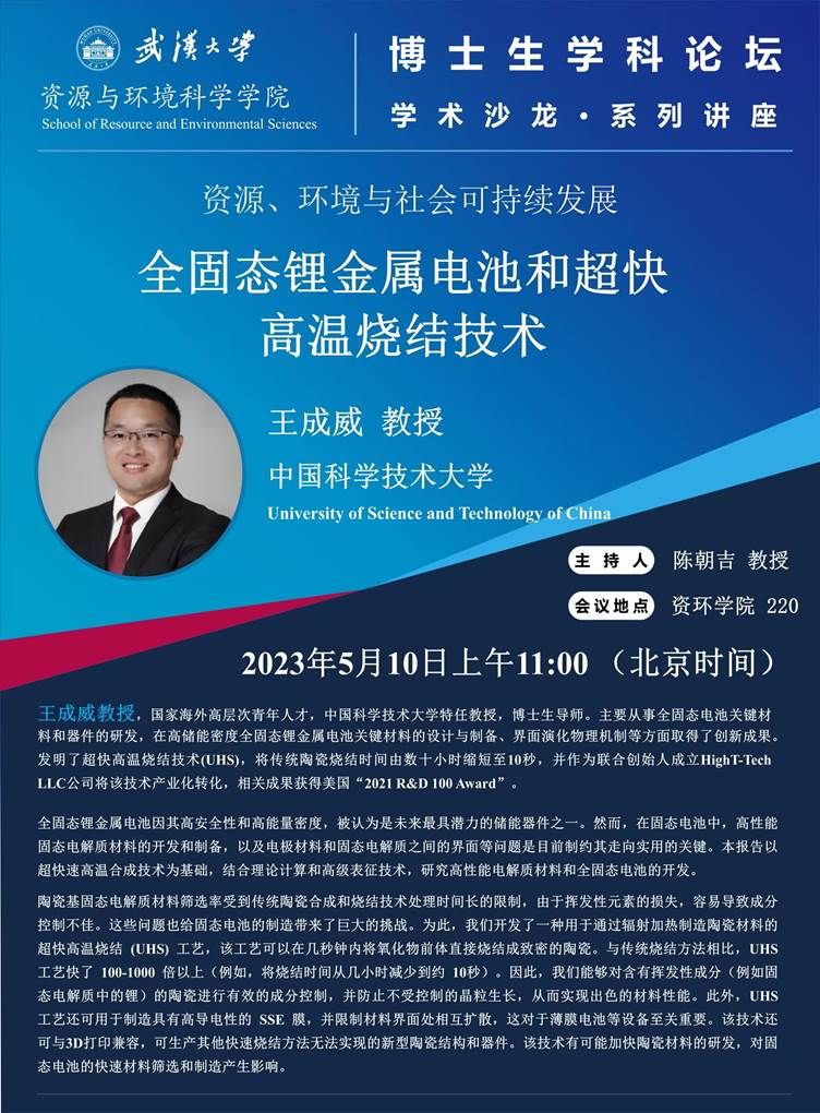 5月10日上午 王成威教授 全固态锂金属电池和超快高温烧结技术