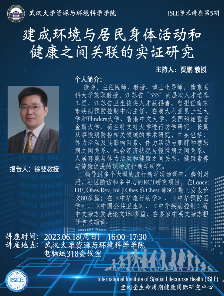 6月18日下午 徐斐教授:建成环境与居民身体活动和健康之间关联的实证研究