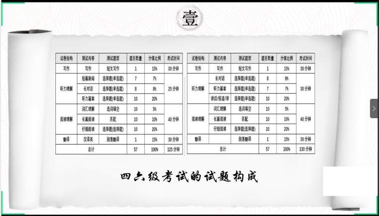 主持人介绍了大学英语四六级考试试题的结构设置,让同学们对题型有了基本了解。