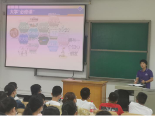 紧接着冯丹老师从资环老王论坛简介 、大学培养目标和大学生活规划三个板块展开讲座。