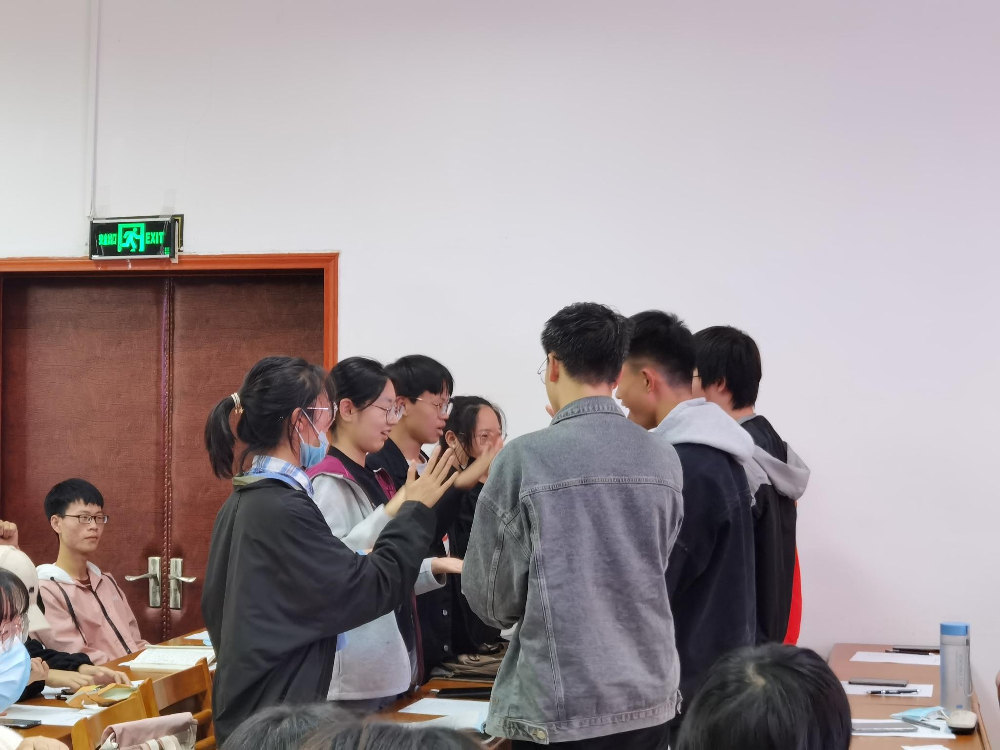 为活跃课堂气氛,培训第一环节进行了“连环拍拍拍”小游戏,八人一组男女混合,整个教室的学生们在拍手声与欢声笑语中驱散了午后的困意,在富有节奏感地喊出“生涯规划”时对本节课的主题有了初步理解。经过了这生动有趣的小游戏后,学生们都饱含精神,全神贯注地期待老师下一步的讲解。