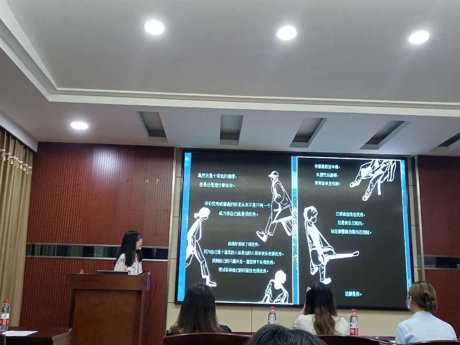 本次大赛共有十组参赛选手,他们分别在五至十分钟的时间内,介绍了自己的阳光理念、阳光故事,通过视频、PPT、情景剧来展现生活中阳光自信的自己。什么是Sunny Star?同学们给出了自己的见解:心怀阳光、温暖他人;在珞珈的春、夏、秋、冬,秉持阳光信念、树立阳光心态,做一颗温暖他人的小太阳……比如,林舒琦、何宇小组用精心制作的校园生活微视频,带我们用一双阳光的眼睛去看到了校园中别样的美丽。现场选手用自己的精彩展示,让大家感受到:积极的心态,会让我们看到世界不一样的风景,有不一样的人生感悟。
