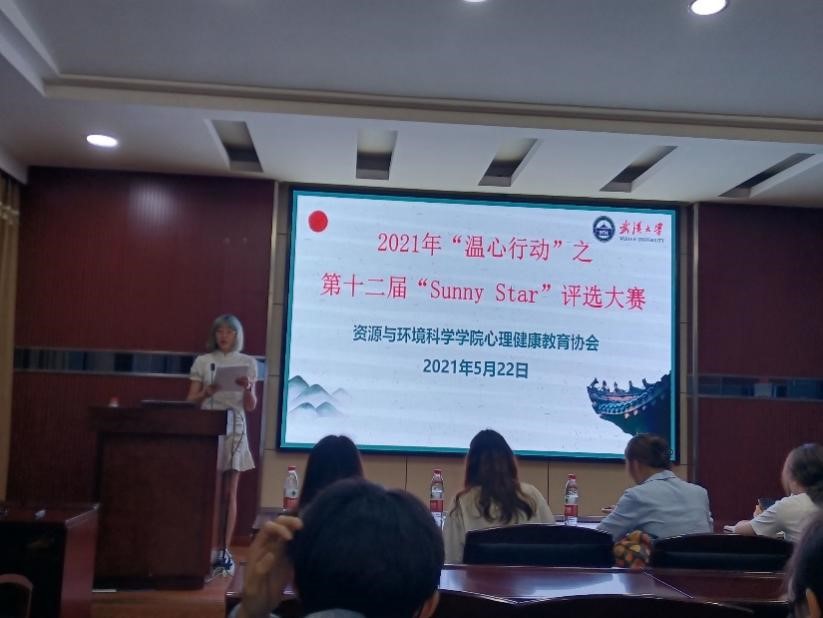 (通讯员:马丽华 范艺潇 徐铮)2021年5月22日晚6:30,老王论坛 “温心行动”之第十二届“Sunny Star”评选大赛在资环院220报告厅拉开帷幕。出席此次大赛的评委嘉宾有:兼职辅导员李国贤老师、资环院学生会主席石英、资环院心协会长李静、资环院学生会团副刘缘。到场的还有所有参赛选手、亲友团成员,以及资环心协的工作人员。本次大赛由资环心协外联部的祝磊主持。