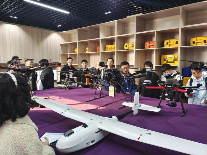 走进517实验室,入目的便是多样的数据采集设备。地信系曾超老师先向同学们介绍了地理信息系统的主要功能,然后介绍了各种用于采集信息的仪器,并展示了部分地区温度数据、空气质量检测数据。采集数据最为普遍的设备是无人机,曾老师向同学们介绍了无人机的构造、工作原理等知识,各种各样的无人机有着不一样的工作模式,协调合作收集数据,展示着地理信息科学的魅力。