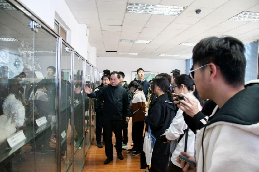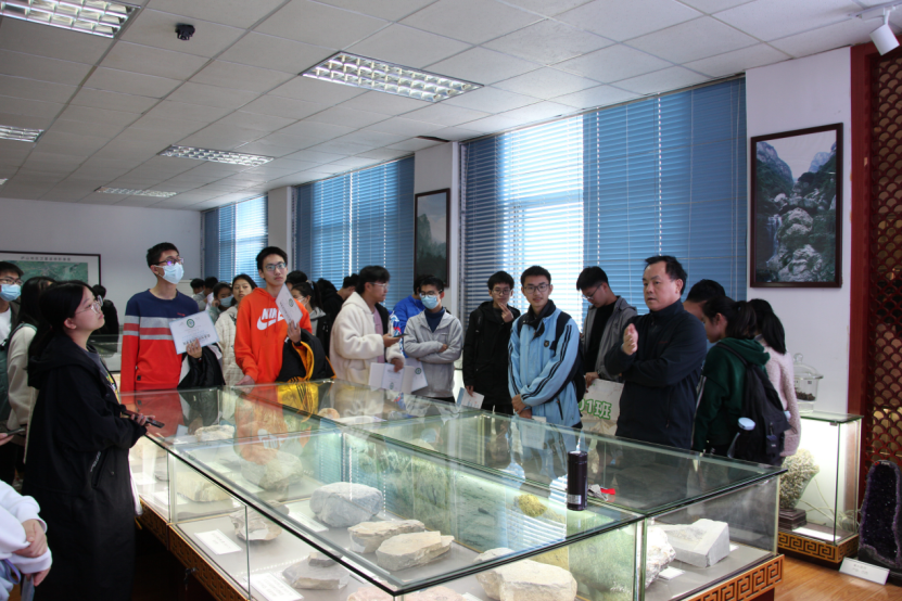 来到410地理标本室,地理系代侦勇老师首先向同学们介绍了矿物的概念并从化学角度解释了矿物形状的形成,还科普了岩石的分类以及化石的相关知识。随后,代老师带领大家浏览了房间内五彩缤纷、令人目不暇接的岩石标本。