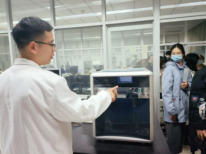 来到221环境科学与工程共享平台,各式各样精密而又专业的实验设备以及认真工作的研究人员使同学们发出由衷的赞叹。参观实验室的过程当中,负责且热心的吉冰冰老师逐一向大家介绍了实验室的硬件设施、人员构成、工作内容等一系列内容,通过这些精密而复杂的仪器,化工材料、环境中的污染物的性能等等被量化成一道道数据,同学们结合着耳中听到的讲解与眼里看到的内容,对环境科学与工程的理解又多加深了几分。