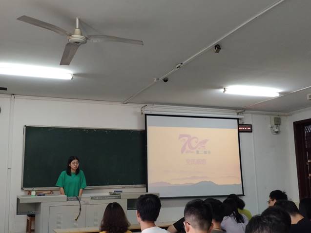 本科生党支部总负责人为本科生第二党支部书记叶雨笑同志;简单介绍了本学期党支部的各项活动安排,提出十月份计划开展“辉煌七十年,永远跟党走”活动,并建议建立本科生所有党员都加入进来的QQ群,解决之前三个党支部分别活动、交流较少的问题;最后,提出要尽快推进党小组的活动进程,通过党小组的组建对入党积极分子的情况进行更好的跟进,同时也更有利于线上线下交流的进行。马老师还强调:作为党员,要正确认识党的思想、看待中国的发展,对于网上舆论切忌盲目跟风,不得发表或转发不当言论;要认真思考自己真正能做什么,如何提升作为一个党员的存在感,力所能及的为老师和同学服务,使每个人都能发光发亮。