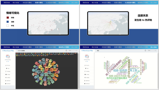 A:一方面,因为现在的大多数新闻媒体平台仅专注于新闻的时间特性,对新闻的另一重要特性即空间特性却不关注,或者说用户对新闻的空间特性并不敏感,所以我们团队就想将新闻与GIS相结合,充分挖掘新闻的时空特性;另一方面,目前人工智能正在迅速发展之中,然后新闻都往往具有舆论导向作用,一般都有一定的情绪效应,所以团队使用了深度学习对新闻文本进行解析出其中的情绪指数。总结起来就是:获取新浪新闻,存储新浪新闻,解析新闻指数。使其可视化,运用管理系统进行分析。