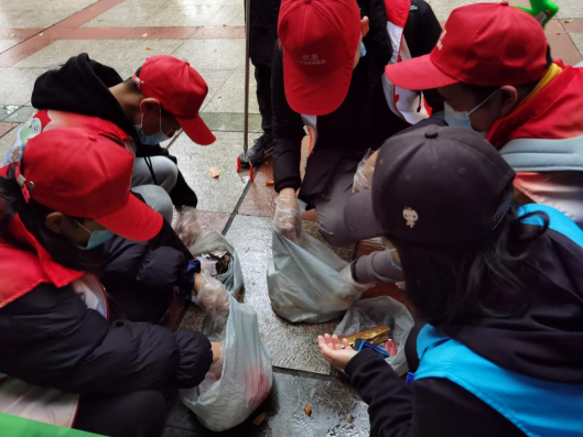 活动当日,全体志愿者佩戴"小红帽"、穿着志愿马甲,首先在张家湾社区进行合影,随后在小组长的带领下分成6个小组深入各社区开展活动。即便天气恶劣,志愿者们的热情与朝气也不减。开展垃圾分类志愿服务,不仅是深入贯彻习近平总书记关于生活垃圾分类工作系列重要指示精神的实际行动,更是提升共青团在基层治理中的贡献度和社会影响力的一次重要实践。
