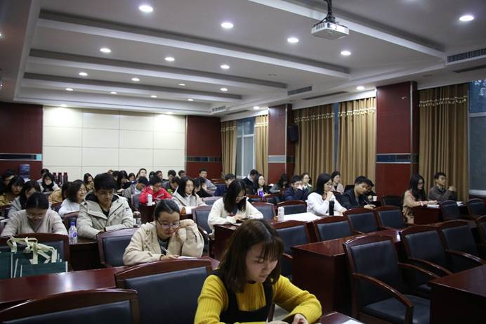 于3月25日晚18:30,在学院220报告厅召开了2019年研究生工作布置会,院党委副书记江尧林,学院辅导员华翔、梅菲,以及研究生会主席团成员、部长,各年级班长、全体党支部书记参加了会议。