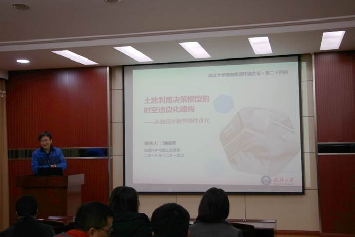 12月6日下午四点半,“珞珈资源环境讲坛”第二十四讲在学院220学术报告厅举办,学院刘殿锋副教授以“土地利用决策模型的时空适应化建构——从路径依赖到弹性优化”为题为大家带来一场精彩的讲座,与大家分享了关于建构时空适应化土地利用决策模型的相关知识。