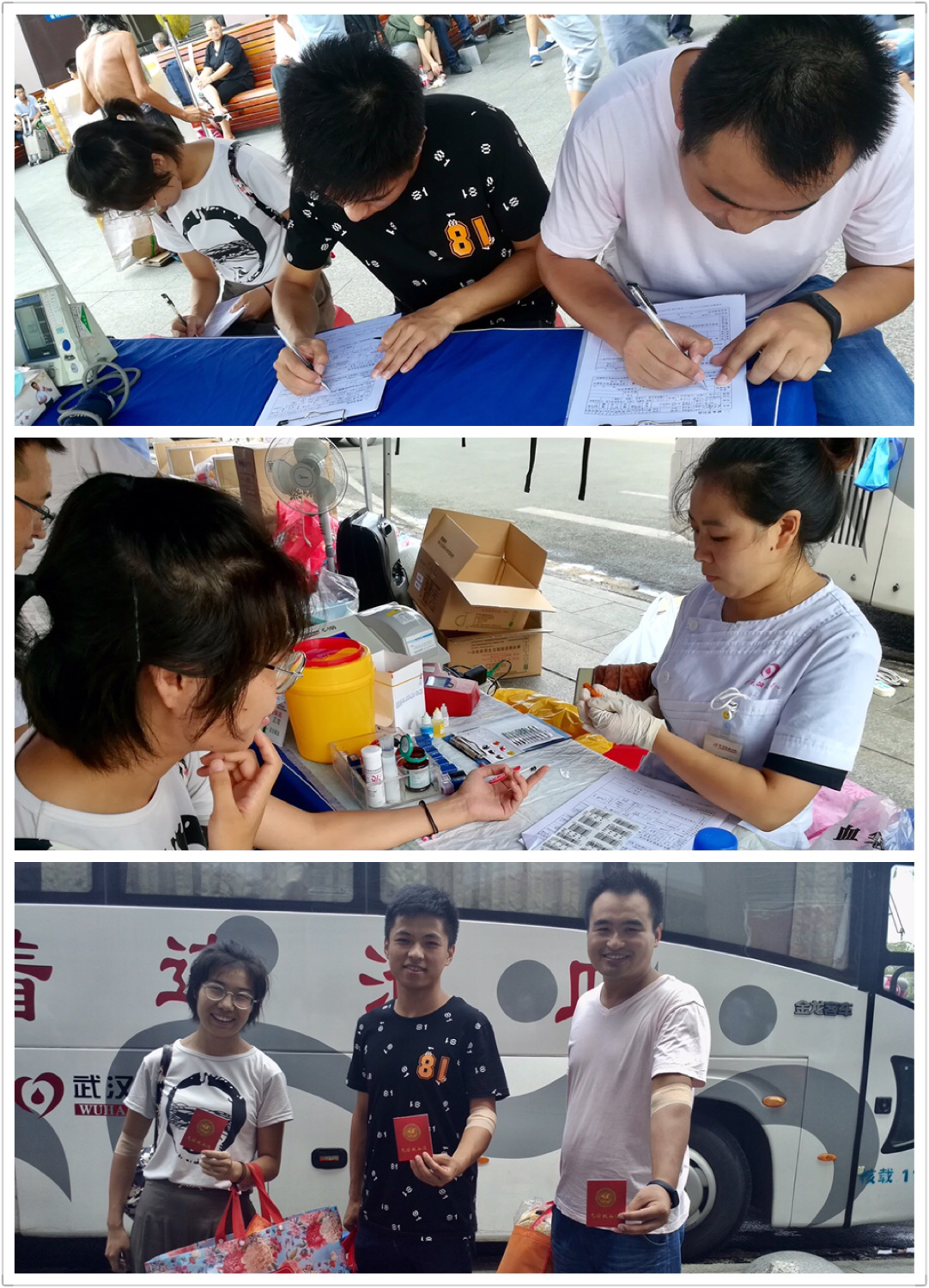 本次献血分为两个梯队,第一梯队由环境类2016级博士研究生党支部书记蒋惠梦带队于早上07:30于信息学部南门集结前往武汉血液中心(江南分中心)捐献“成分血”;
