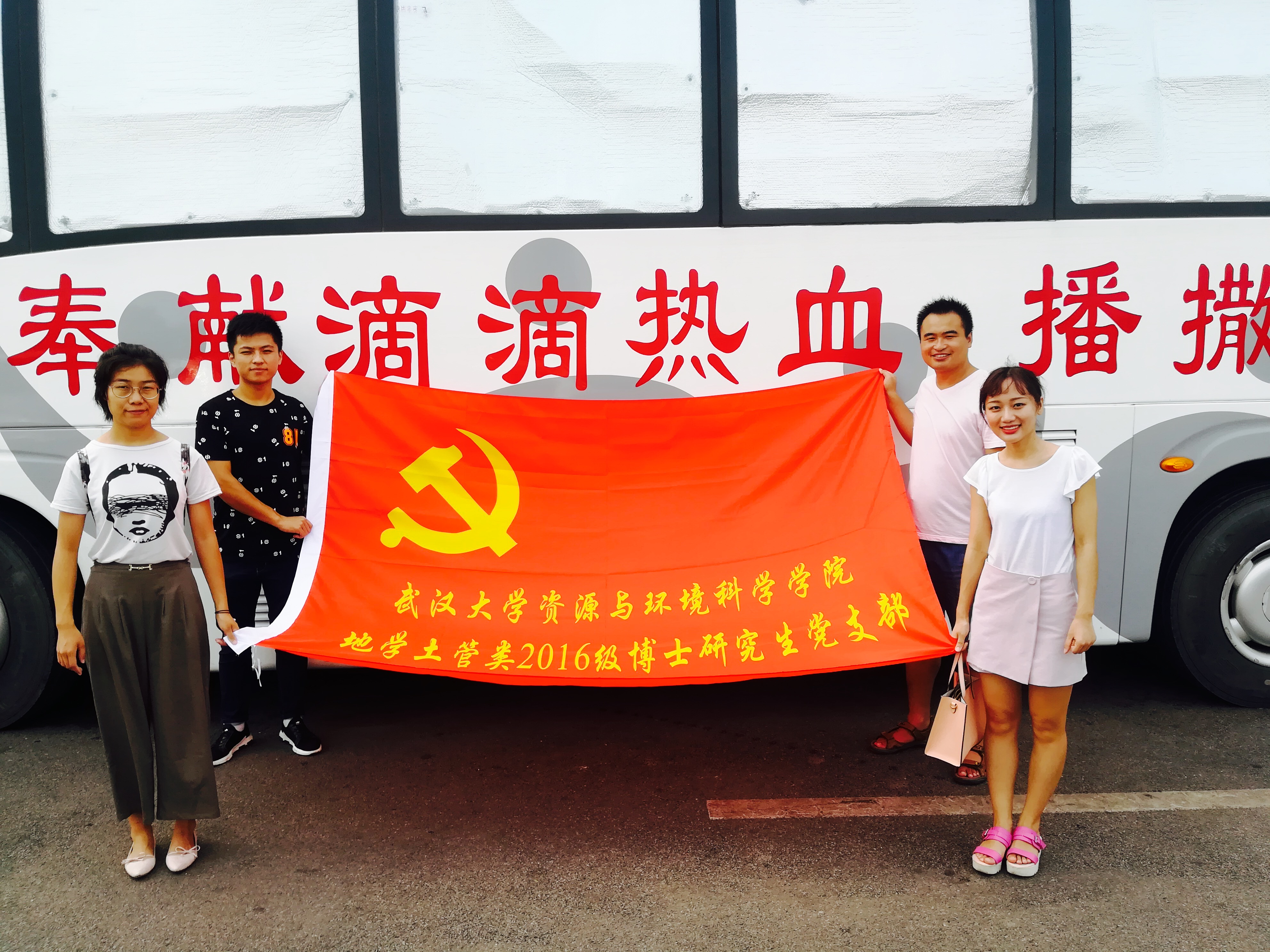 第二梯队则由地学土管类2016级博士研究生党支部书记银超慧带队于上午09:00于学院一楼大厅集结前往武昌火车站西广场售票厅门口处的献血车捐献“全血”。