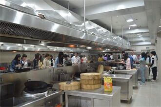 研究生们与素质班成员在五味轩师傅们的带领下一起合作烹饪美食