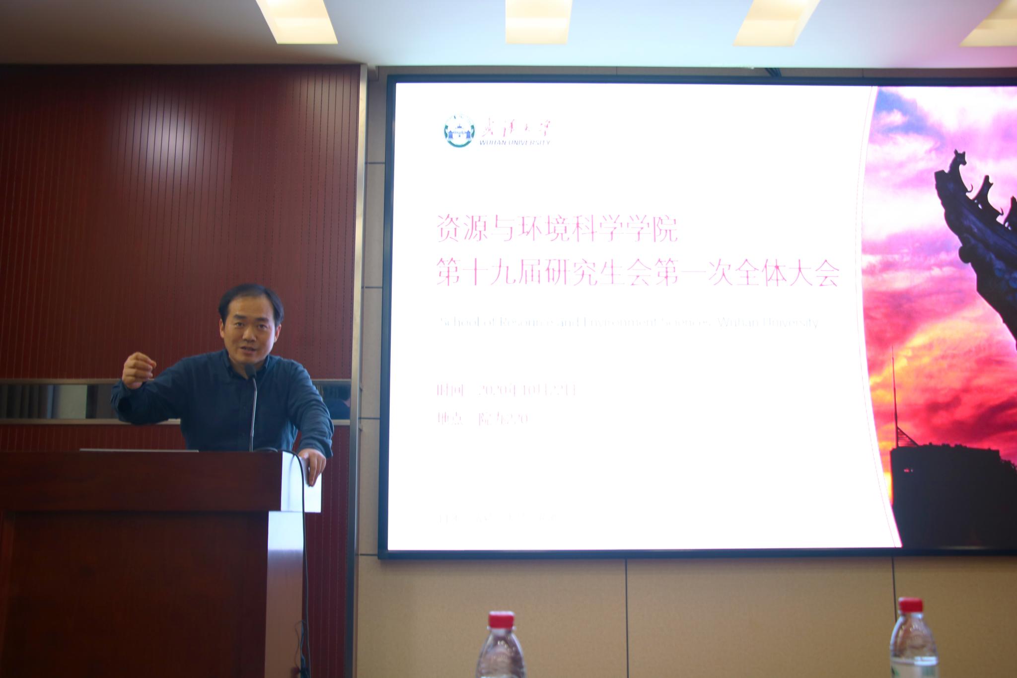会议第一项:由院党委副书记雷起宏老师代表学院讲话,并向新一届研究生会委员提出三点工作要求:1)研会作为学院党委领导、团委指导下的学生组织,要提高政治站位,强化政治引领。2)研会要挖掘学生所需,在继承传统活动的基础上,注重突破与创新,树立品牌、质量和标杆意识,打造资环研会精品。重点关注研究生学术交流、就业实践渠道开拓,研究生党团建设以及研究生文体、心理健康、生活权益等方面的活动。3)研会要加强组织内部建设,培养团队归属感,全面推动学生工作健康发展。