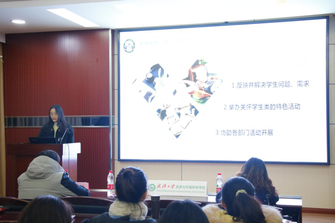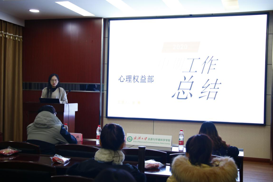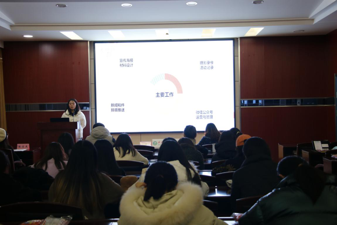 大会第二项,研究生会组织部、学术部、文体部、宣传部、生活权益部、职业发展部、心理健康部部长依次进行述职汇报。各部门部长对本学期的部门工作进行陈述汇报。
