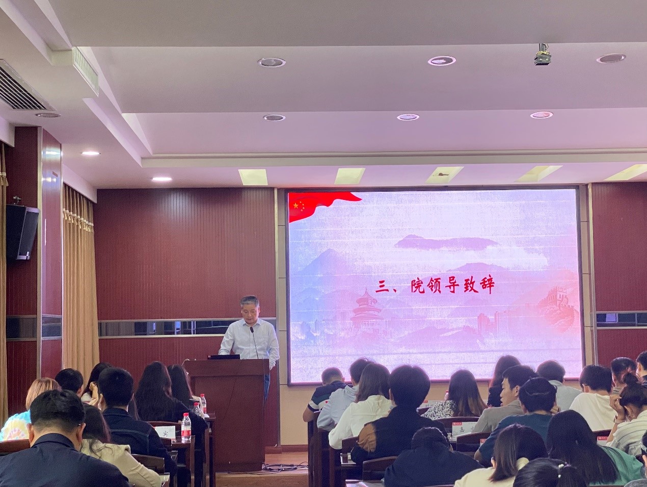 党委书记刘兴国致辞,他先是对大会的顺利召开表示了祝贺,对校研会以及其他院系的支持表示感谢,同时对上一年度研究生会的工作给予了肯定,也对新一届研会成员提出了新要求。