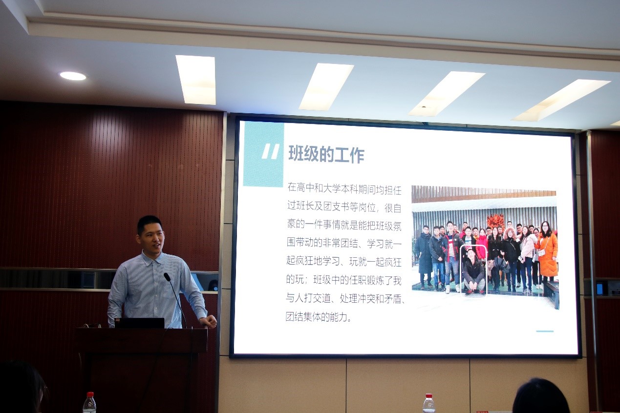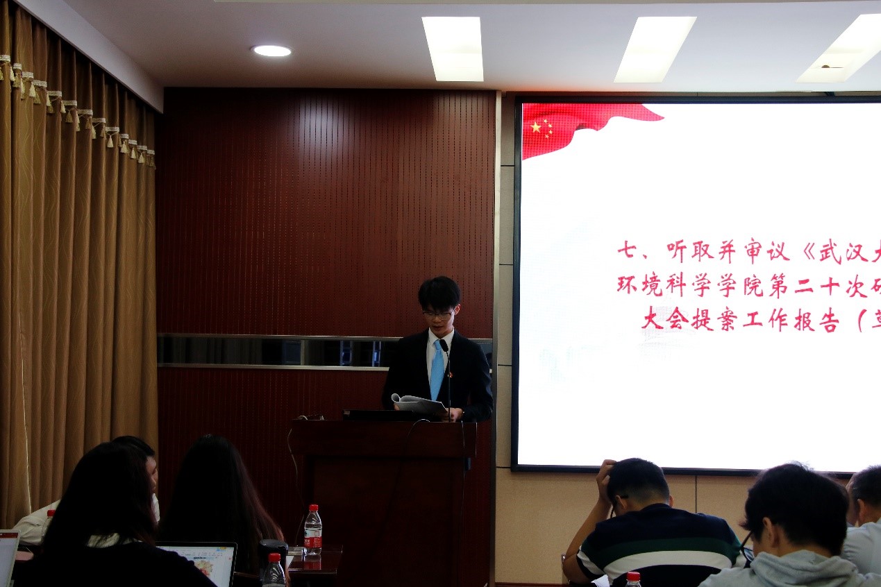 研究生会主席团成员张俊杰同学也对第十九届研究生会的工作进行了肯定,以及感谢了资环研会对校研会的工作的支持,在服务同学、研会改革、思想建设等方面对提出了期望。