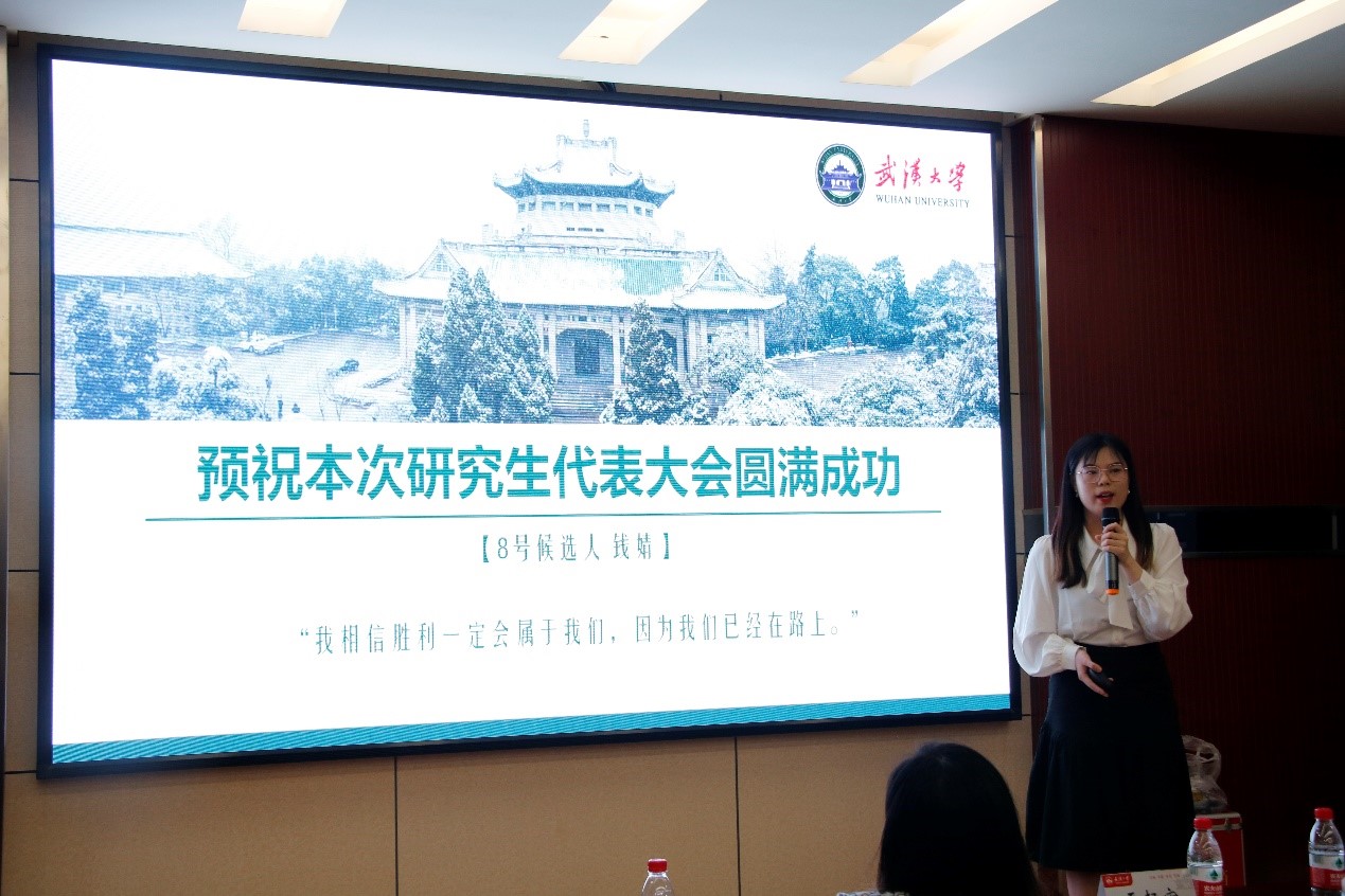 在选举阶段,十位候选人依次从自我介绍、研会认知、工作计划、竞选宣言等方面发表竞选演讲,最终通过在场代表无记名投票,差额选举产生了第二十届研究生会主席团成员3人:钱婧、赵冰冰、刘玮,第二十届博分会负责人2名:李思宇、石昊。