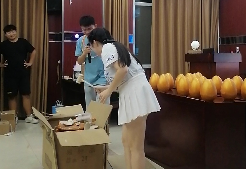 晚会期间,每个同学都除了获得了导演组精心准备的伴手礼袋以外,还通过游戏环节进行了砸金蛋活动,又获得了一个小惊喜,既增加现场同学之间的互动,也在这最后团聚的时刻,让彼此的记忆停留在最美好的时刻。