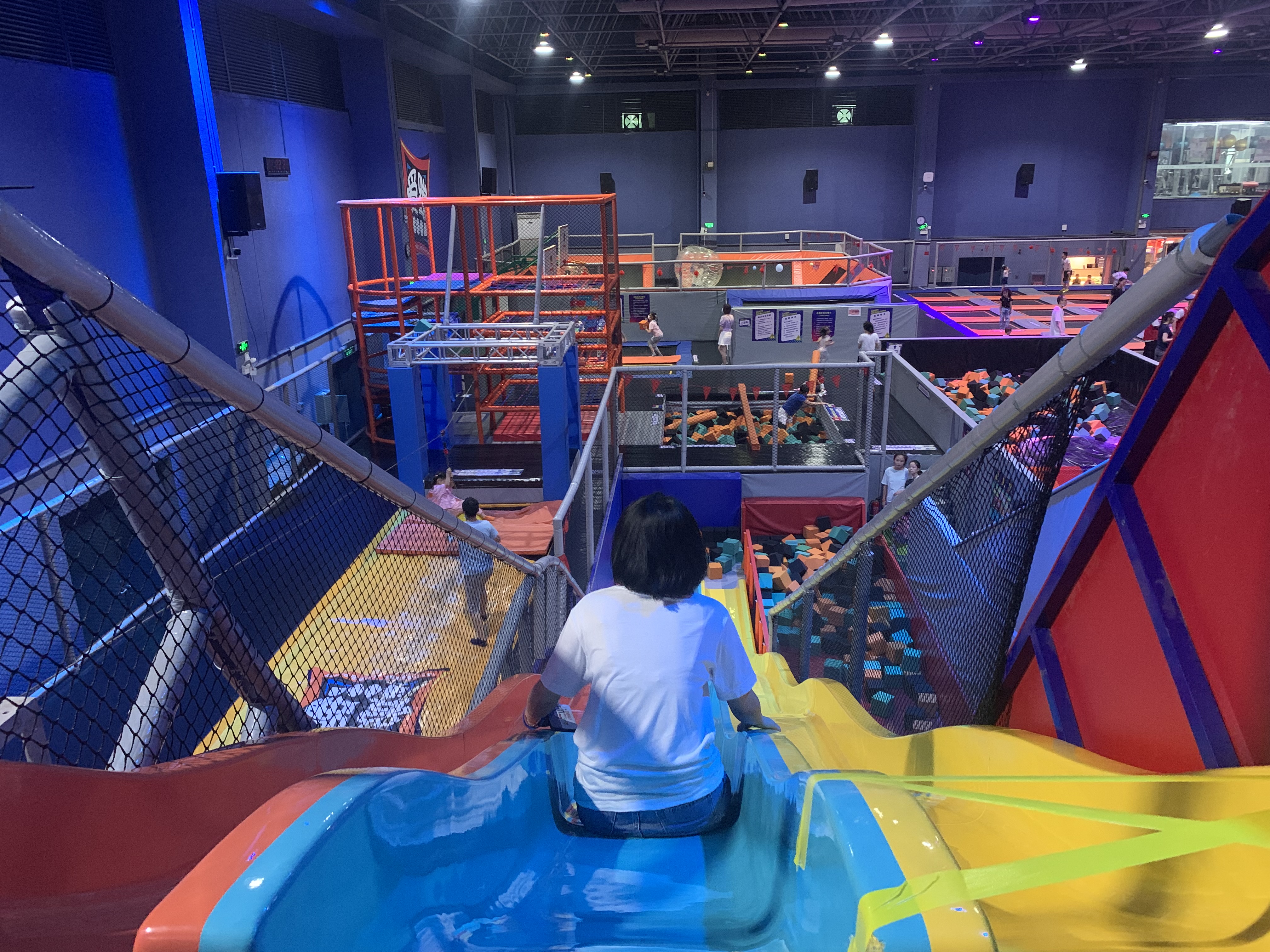 在热身运动部分教练现场教学蹦床的正确打开方式,带领大家进行充分热身,确保安全运动减压,杜绝意外发生。坐弹比拼赛中,同学们学习跪弹和坐弹的标准动作并分组进行了激烈比拼。碰撞球大赛中各队选出优秀队员进行撞球对抗,不限方式击倒对手,在30s倒计时结束前留在圈内的同学获胜。游戏过程中,同学守株待兔、以静制动在最后10秒发起猛烈进攻成功占领核心位置,献出精彩的策略对抗。最后的自由环节,同学们挑战起了最精彩最刺激的90度滑梯和滑草项目,在高速下落的过程释放自我。另外还有娱乐休闲的滑梯、蹦床投篮或扣篮、溜索、攀岩、独木桥争夺,与教练的协同蹦床表演等项目让人在逃脱引力的刺激之余体会到与休闲娱乐的美好。