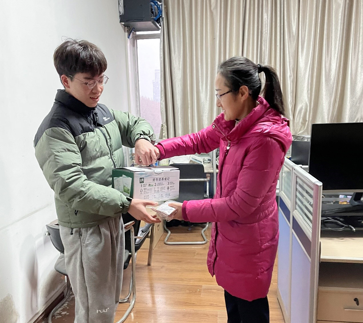 两位老师给同学们送上新春的问候,带去牛奶和暖宝宝,在大雪纷飞之前传递学院对学子的新春关爱。老王论坛