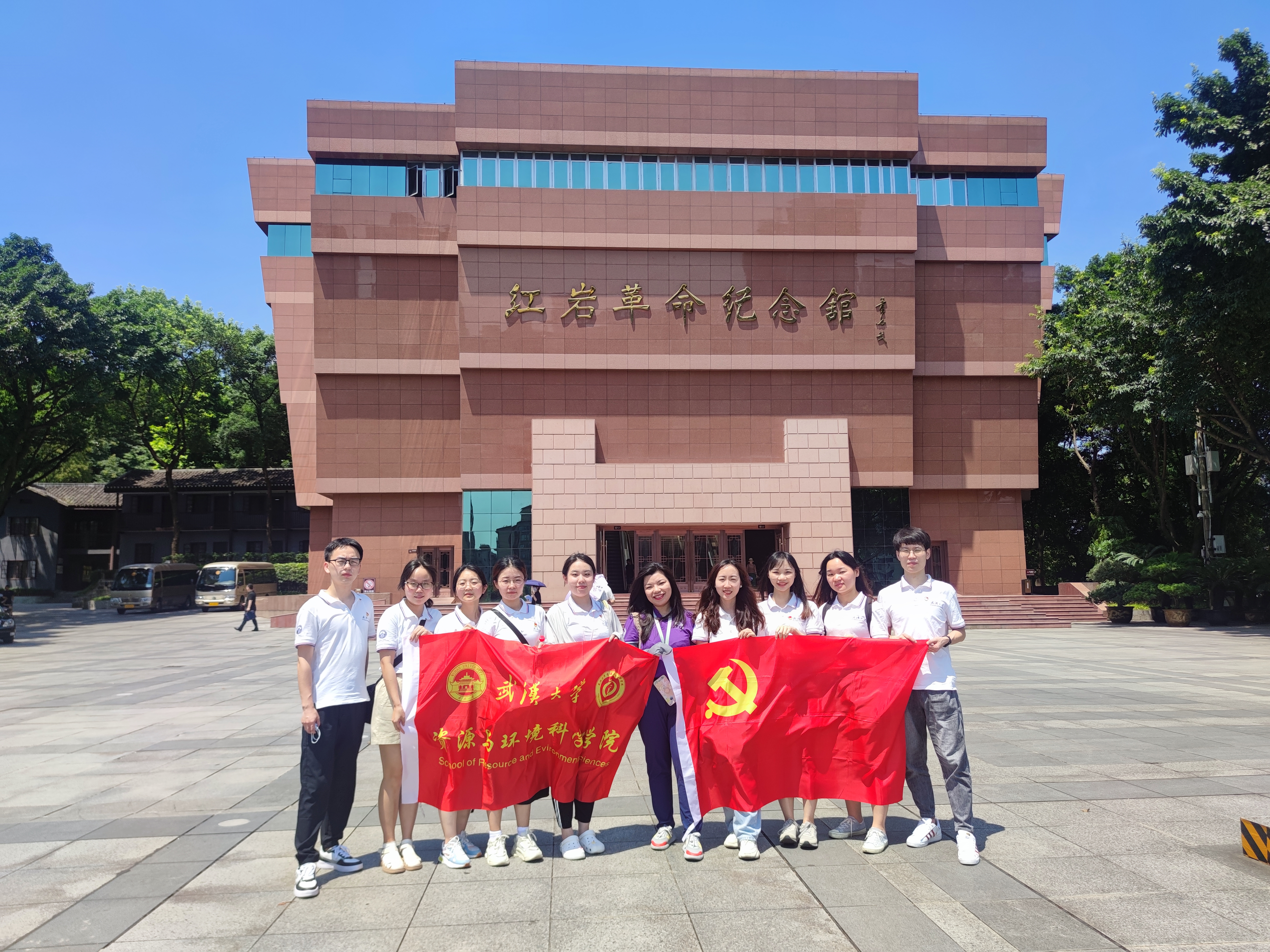 在三峡博物馆外,我们偶遇了一位老党员同志。得知我们是从武汉来到重庆学习,奶奶热切地带领我们参观了人民大礼堂和周公馆。人民大礼堂建于1951年,见证了“中国人民站起来了”“欲以平等的姿态自立于世界民族之林”的坚强信念;周公馆于1932年开始作为中共中央南方局部分机构所在地,见证了周恩来等党的领导人在风雨如晦的时局中巧妙地与国民党顽固派斗争的坚定信念和政治智慧。在对党员先辈们艰苦卓绝的奋斗与矢志不渝的初心的回顾中,研究生党员们强化了充分传承、发挥党的优良作风,敢于承担复兴民族的使命的信念!