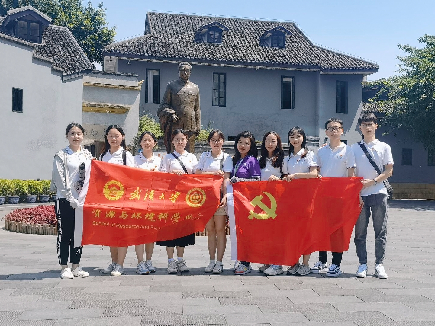 在纪念馆入口的党旗前,梅菲老师带领研究生党员们一起庄严重温入党誓词。“人无精神则不立,国无精神则不强”,革命志士和时代楷模用忠诚、汗水,甚至生命写就的事迹,时刻提醒我们“从哪里来、向何处去”,鼓舞我们不忘初心、牢记使命,让红色基因融入血脉。