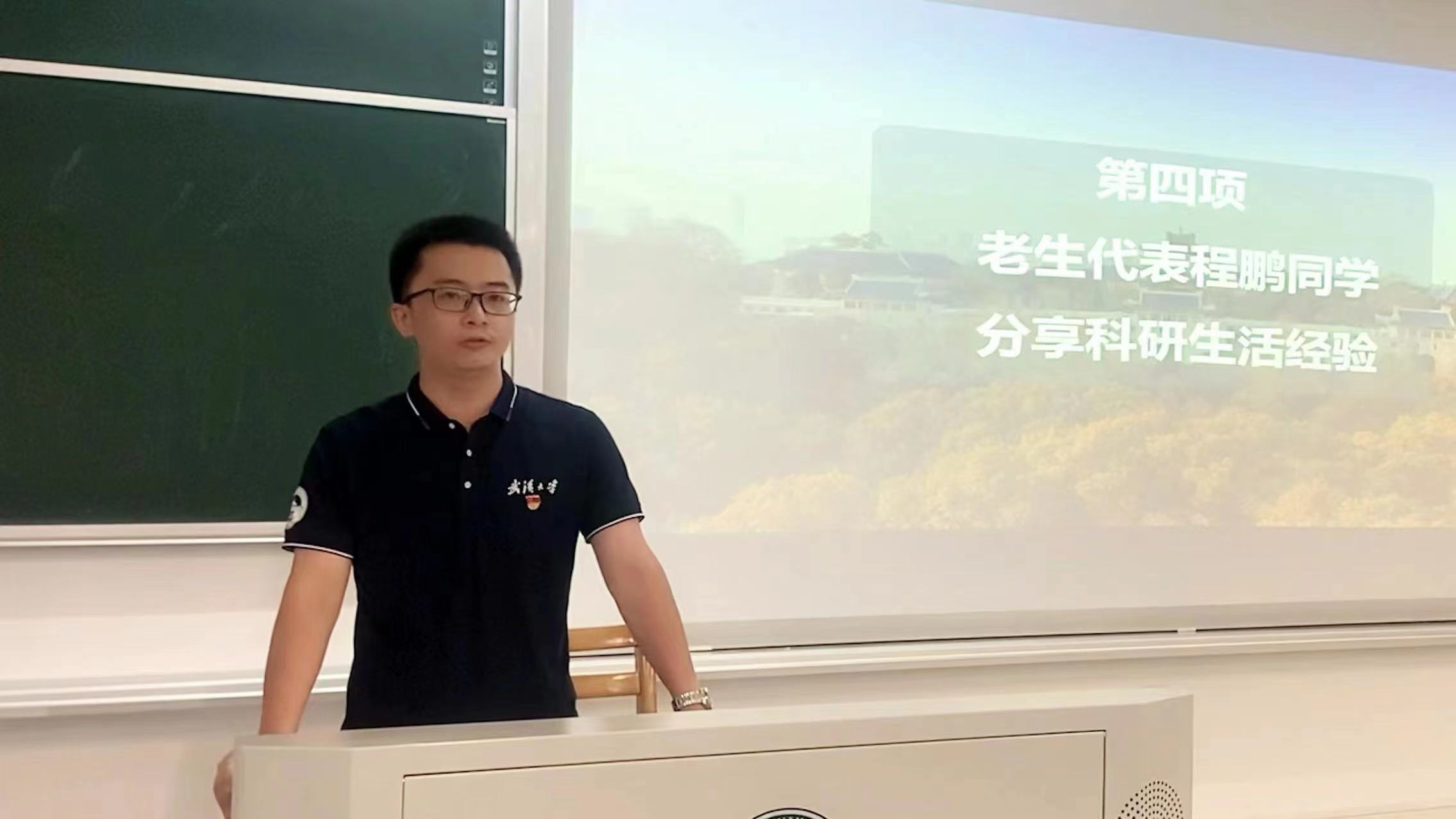 博士研究生程鹏作为老生代表分享了他的科研生活经验。作为2020级的优秀在读博士生,程鹏既在学习科研方面表现优异,又能在学生工作领域尽展风采。他分享了自己平衡科研生活、学生工作和日常生活的经验,提醒新同学们尽早明确研究方向以及对未来的发展规划,保持自律,保持良好心态,勇往直前。