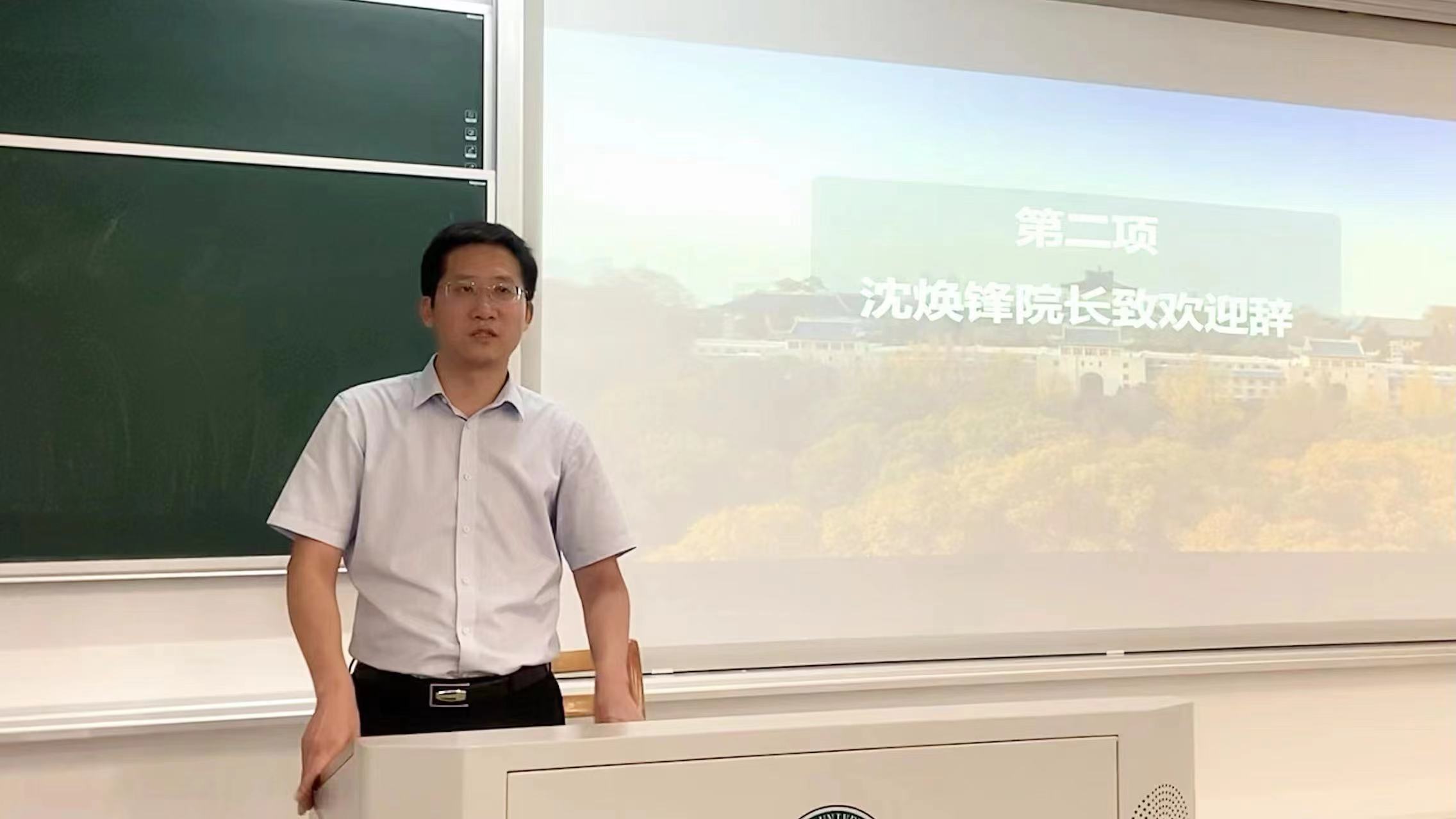 首先,沈焕锋院长致欢迎辞,他先简单介绍了学院的学科建设情况,提醒同学们研究生阶段的学习不要受专业局限。沈院长分享了四条研学经验:一是自信,要相信只要自己足够努力,勤于积累,就会有收获;二是自立,他指出研究生阶段的导学关系中,导师是研究方向的把控者与指引者,同学们要学会独立钻研;三是自强,同学们要围绕国家需求,为实现中华民族伟大复兴中国梦而读书;四是自省,通过与过去、与同学的比较,反思自己时间把控能力强不强,时间投入够不够,方向对不对。沈院长以自身经历举例,希望同学们能够学习有进步,科研有成果。