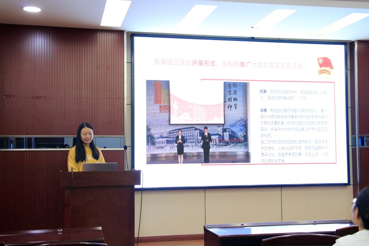 会议第五项,2021级地图学与地理信息系统专业团支部书记焦丹同学介绍了团日设计大赛相关内容,焦丹同学指出拓展团日活动开展形式,发掘和推广优秀的主题团日活动是大赛的主要目的,并从活动目的、前期准备、中期现场和后期宣传四部分出发介绍了怎样开展一次团日活动。