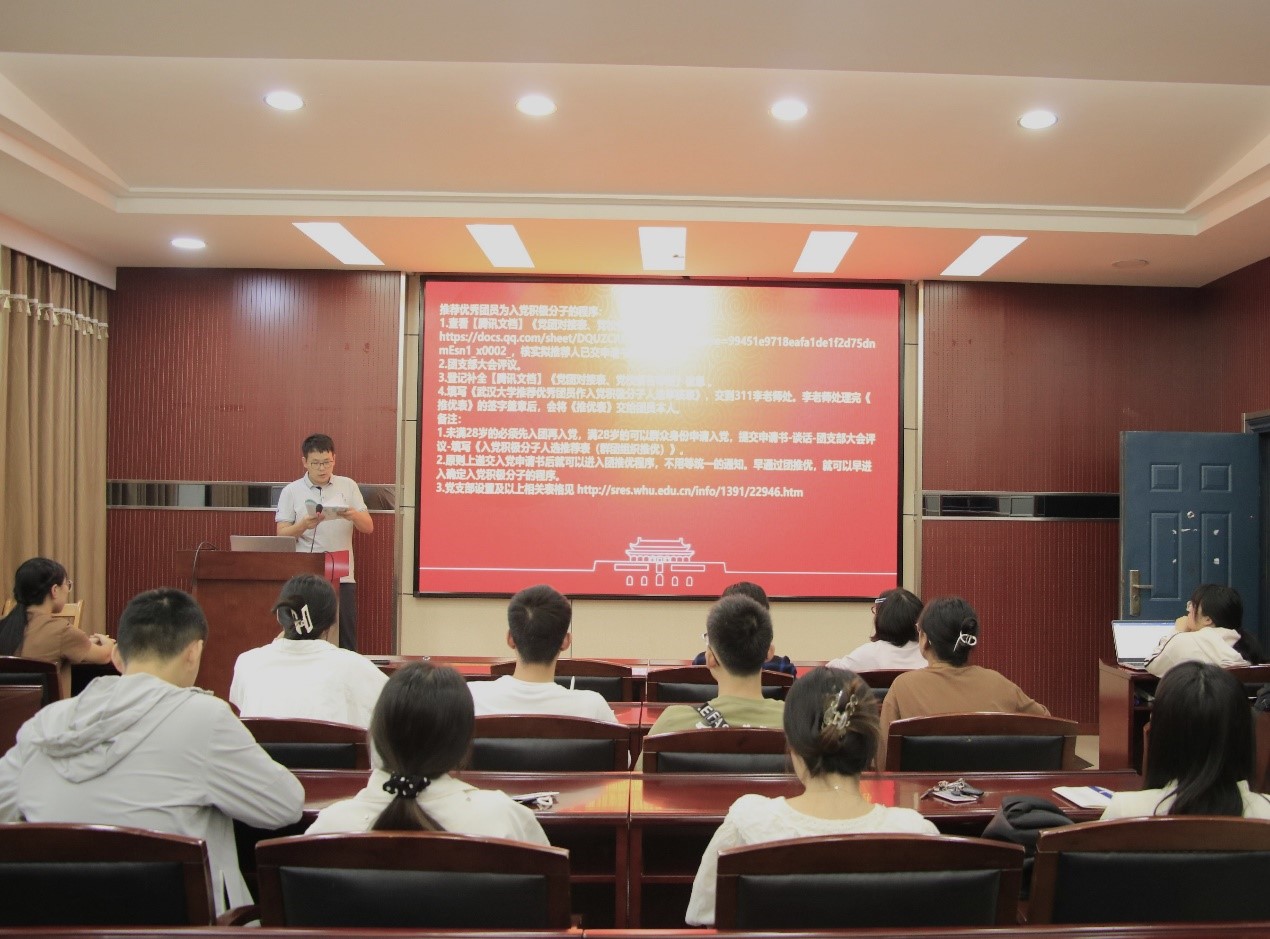 会议第二项,研究生辅导员李韩老师介绍了团支部推优工作。李韩老师详细介绍了推荐优秀团员为入党积极分子的程序以及注意事项,强调推优入党过程中必须保障公平公正,同时避免同学之间产生矛盾。最后,李韩老师就各位新任团支书提出的具体问题进行了一一解答。