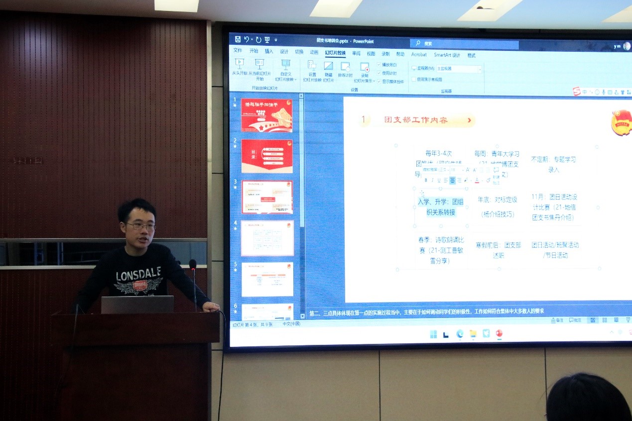 会议最后,团委副书记杨显曾同学对团支部委员会的分工提出了建议,并就智慧团建相关操作进行演示,对支部活动经费支持、团支部述职以及团日活动等问题作了说明与答疑。至此,本次新团支书培训会圆满结束。