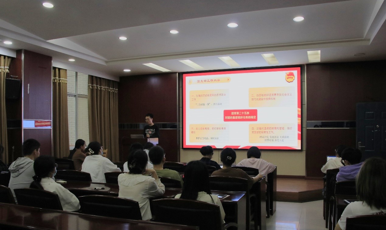 会议第四项,团委副书记杨显曾同学就智慧团建专题录入、团组织关系转接以及对标定级等工作作了详细解释与具体答疑。