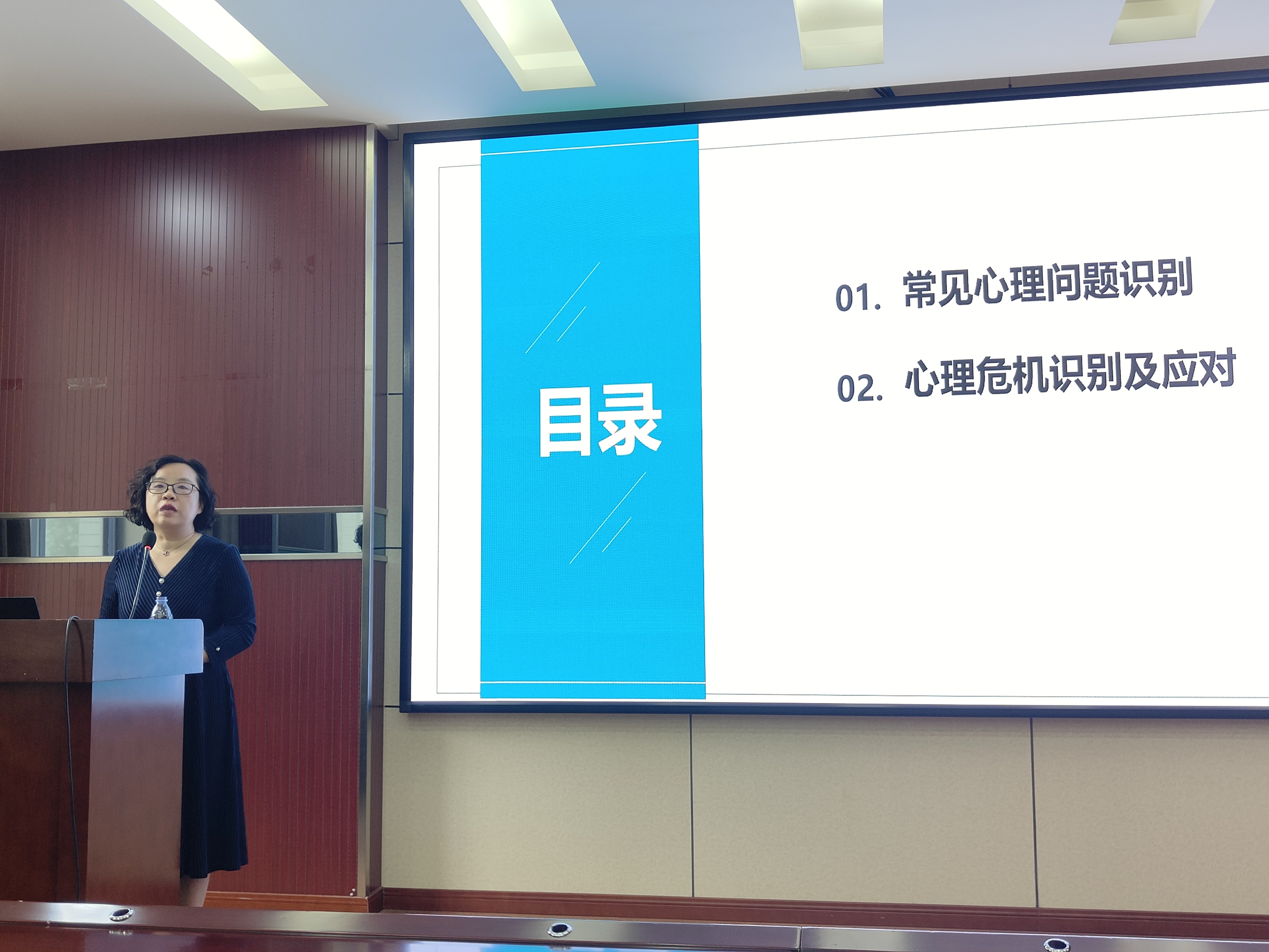 给教职工作心理健康教育专题培训。参加培训的有学院研究生导师、班级导师、行政人员等。培训由党委副书记马丽华主持。