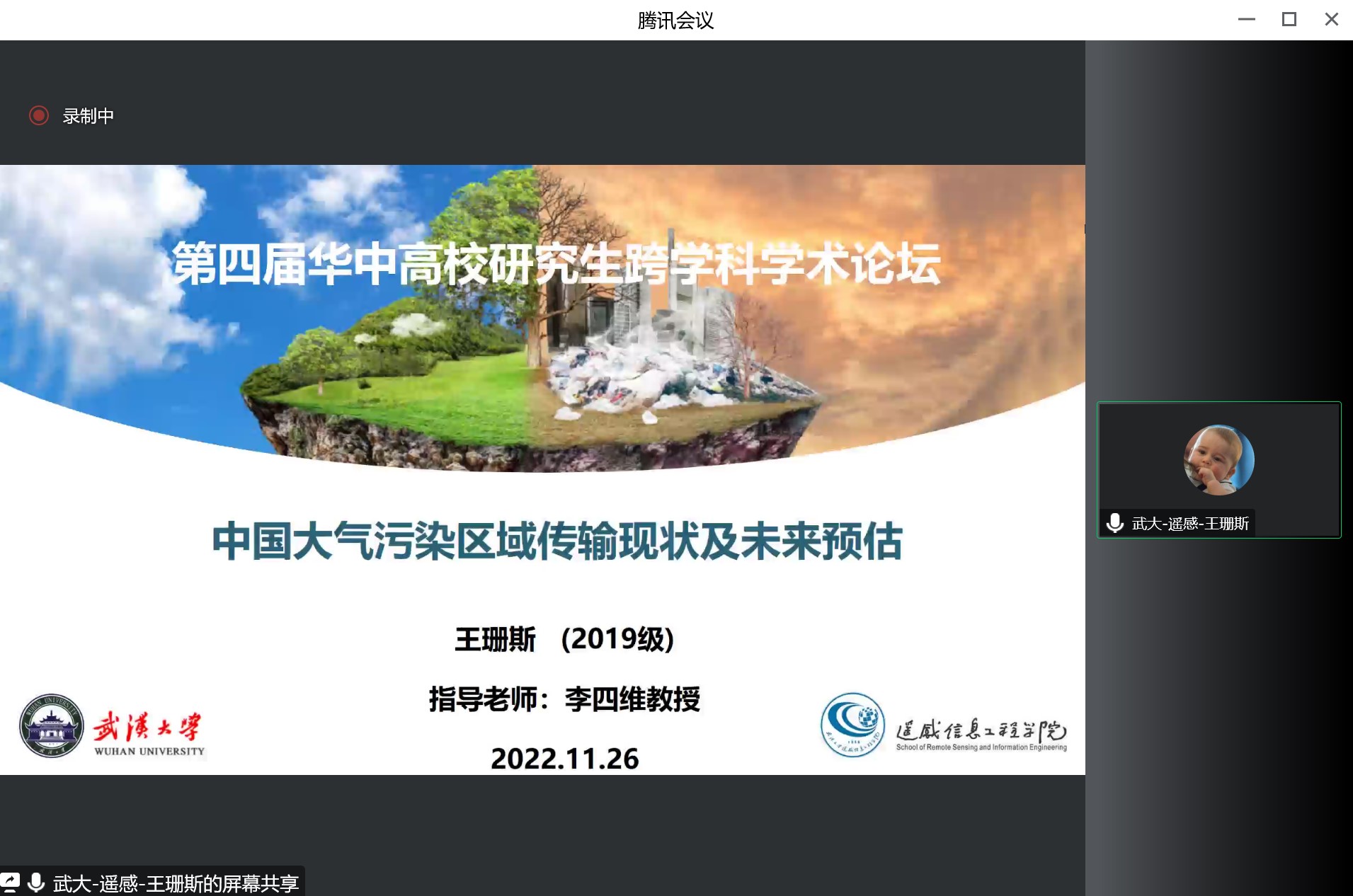 遥感信息工程学院的王珊斯同学,她对中国大气污染区域传输现状进行了分析和未来预估,发现了协同减排对PM2.5远距离输送的显著影响,并量化了减污与气候友好型政策对未来污染物跨界输送的影响,具有可观的协同收益。最后是来自老王论坛