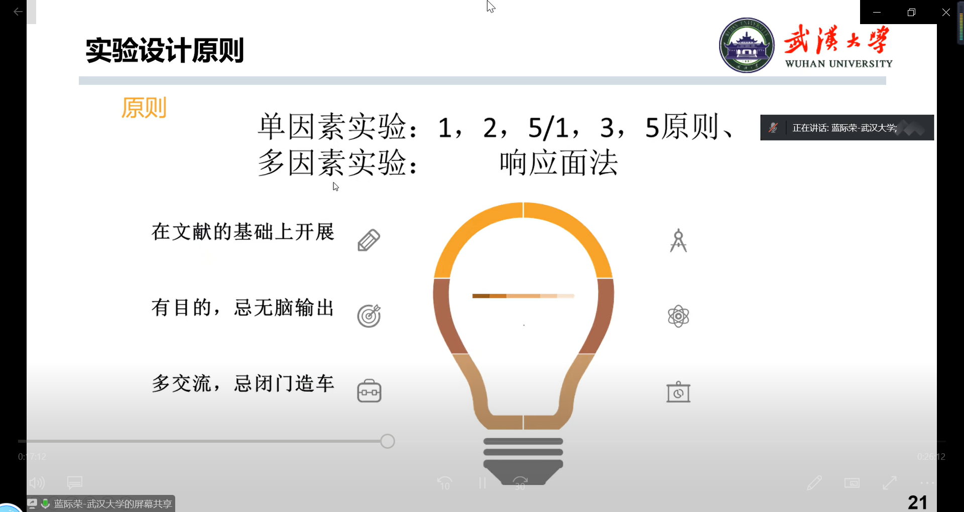 第二部分是“实验设计技巧”。在实验设计的时候,可以提前写出相关文字材料,做好准备工作可以帮助我们更快的成果产出,另外,绘制实验草图也有利于实验思路的形成。蓝师兄指出实验设计的原则主要包括:在文献基础上开展、有目的,忌无脑输出;多交流,忌闭门造车。