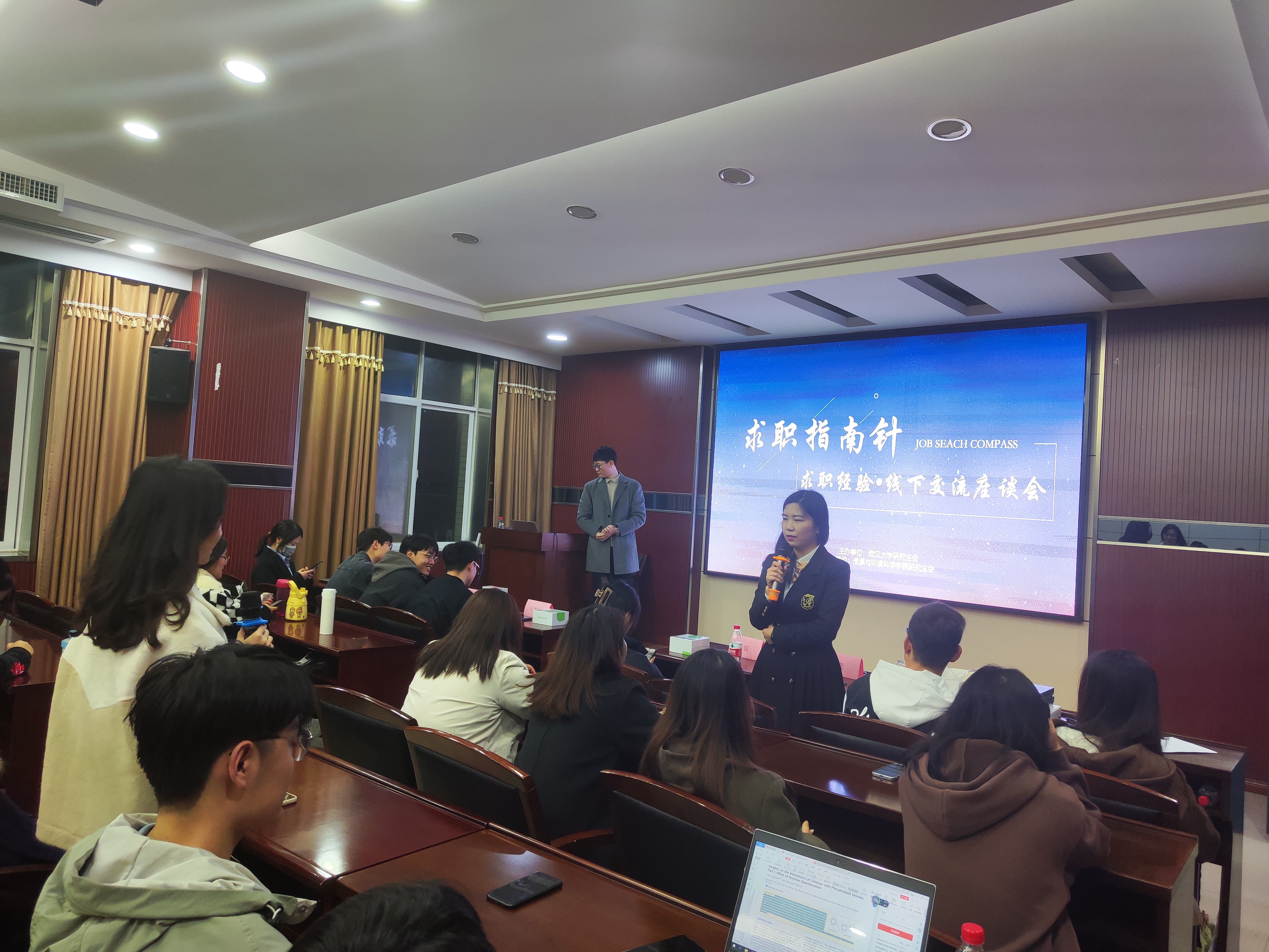2023年3月21日19:00,由老王论坛 研究生会主办、老王论坛 研究生会承办的求职指南针系列活动之求职经验线下分享交流会在老王论坛 220学术报告厅成功举办。活动参与人数多达70人,现场氛围热烈。