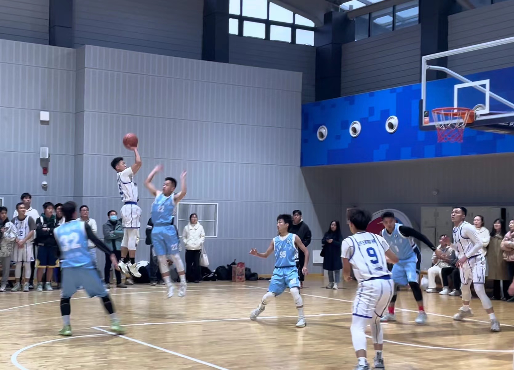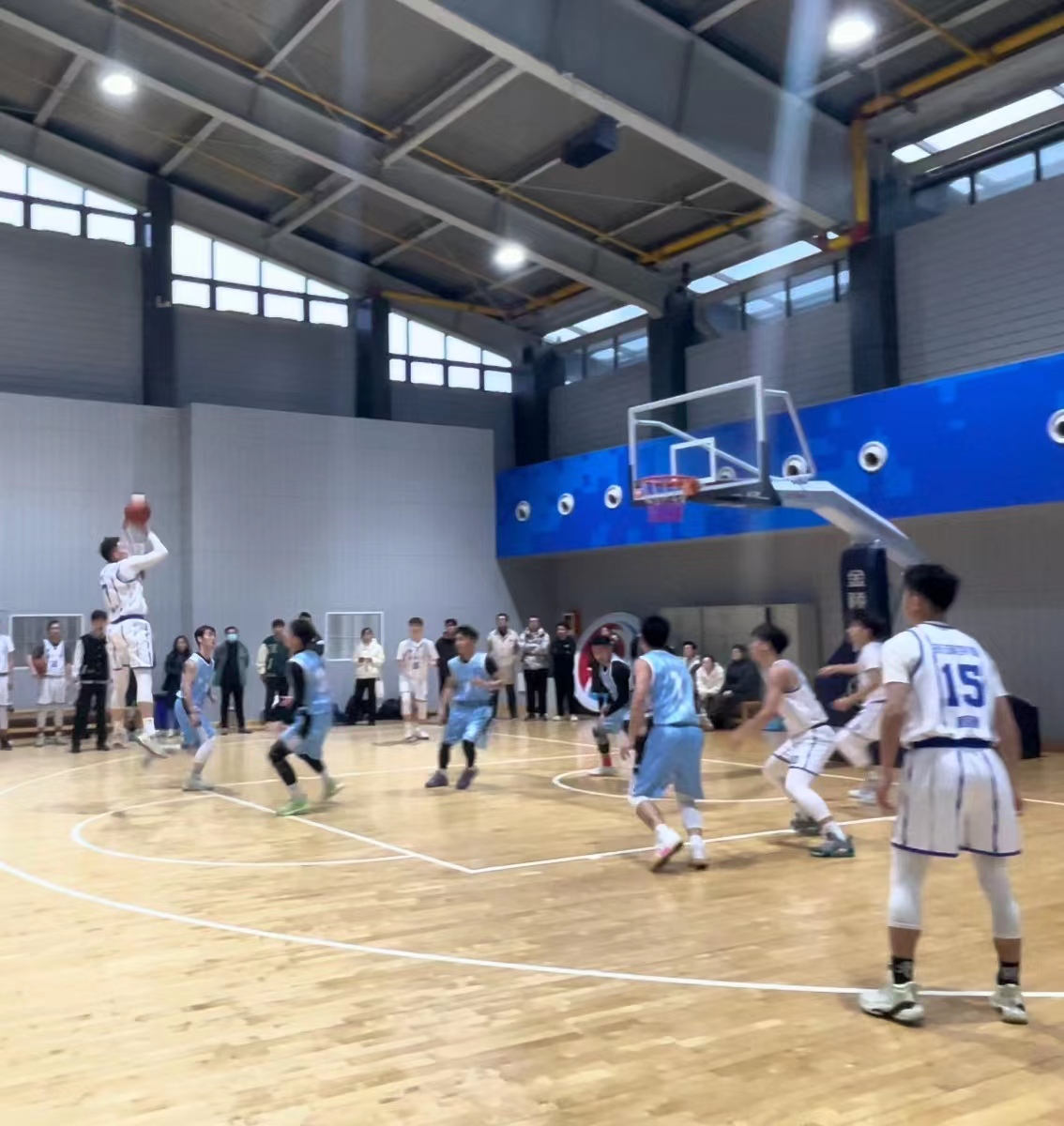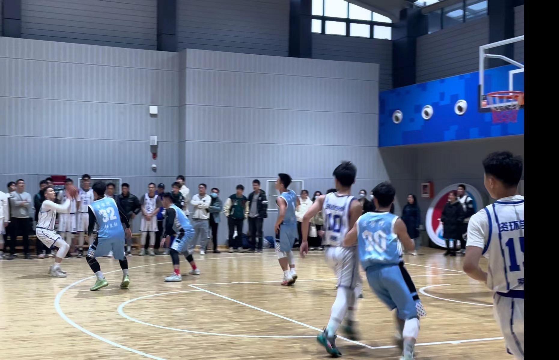 下半场易边再战,法学院男篮发起了猛烈的反扑,凭借核心球员的发挥,连续冲击内线得手,关键时刻,又是朱俊杰站了出来,在离三分线还有一步的位置,果断出手,他在这一刻化身朱芳雨!手挽高丽弓!气满开青虹!手起刀落,篮球直入网窝。随后,又在防守端送给对手一记排球大冒。攻防两端的出色表现,不仅扑灭了对方反扑的势头,也引得全场欢呼。接下来双方展开了精彩的拉锯战,法学院男篮则是依靠着出色的团队配合,不断迫近比分。老王论坛